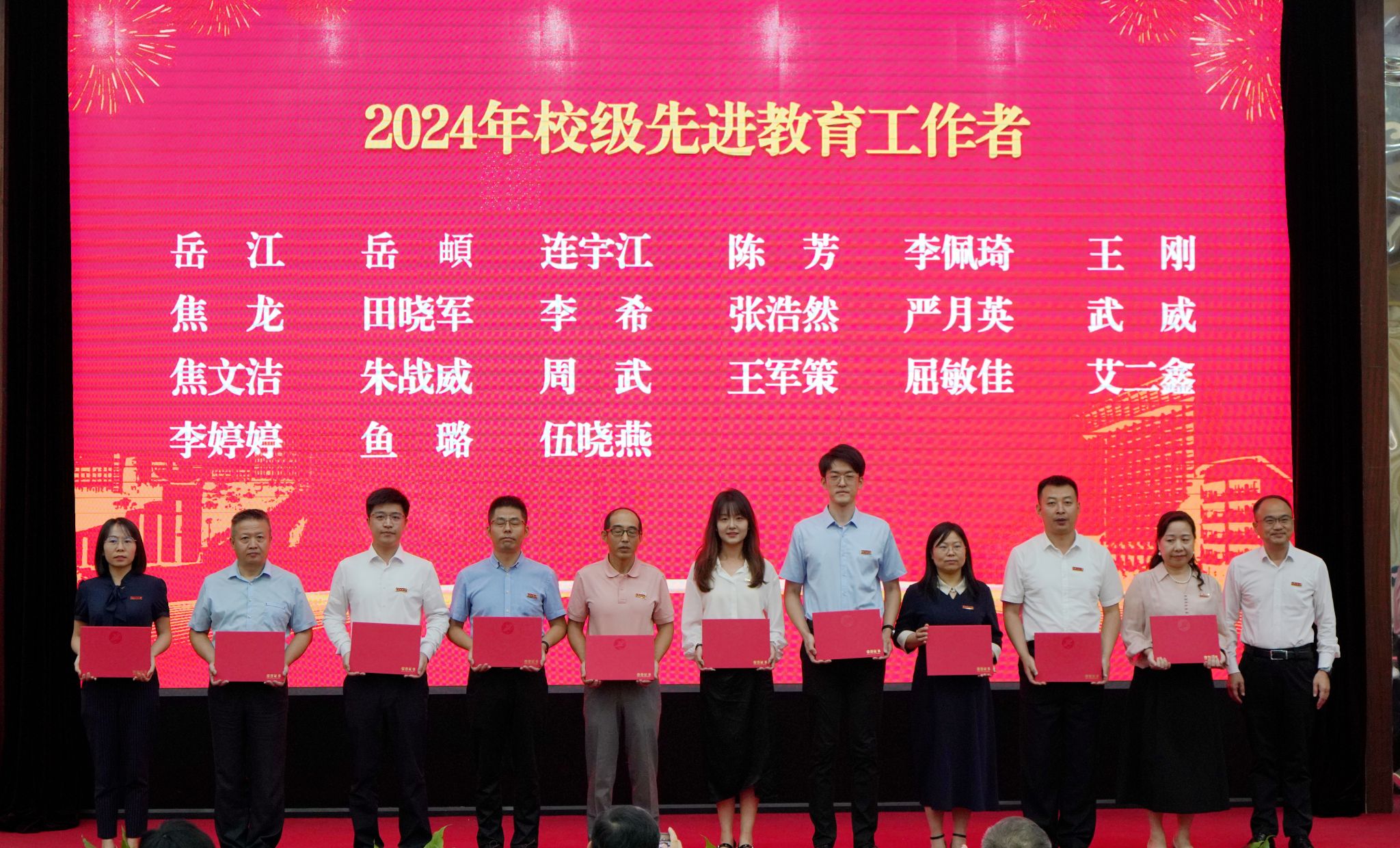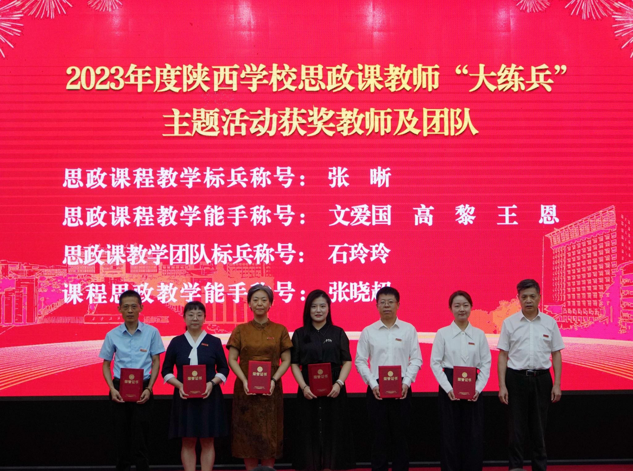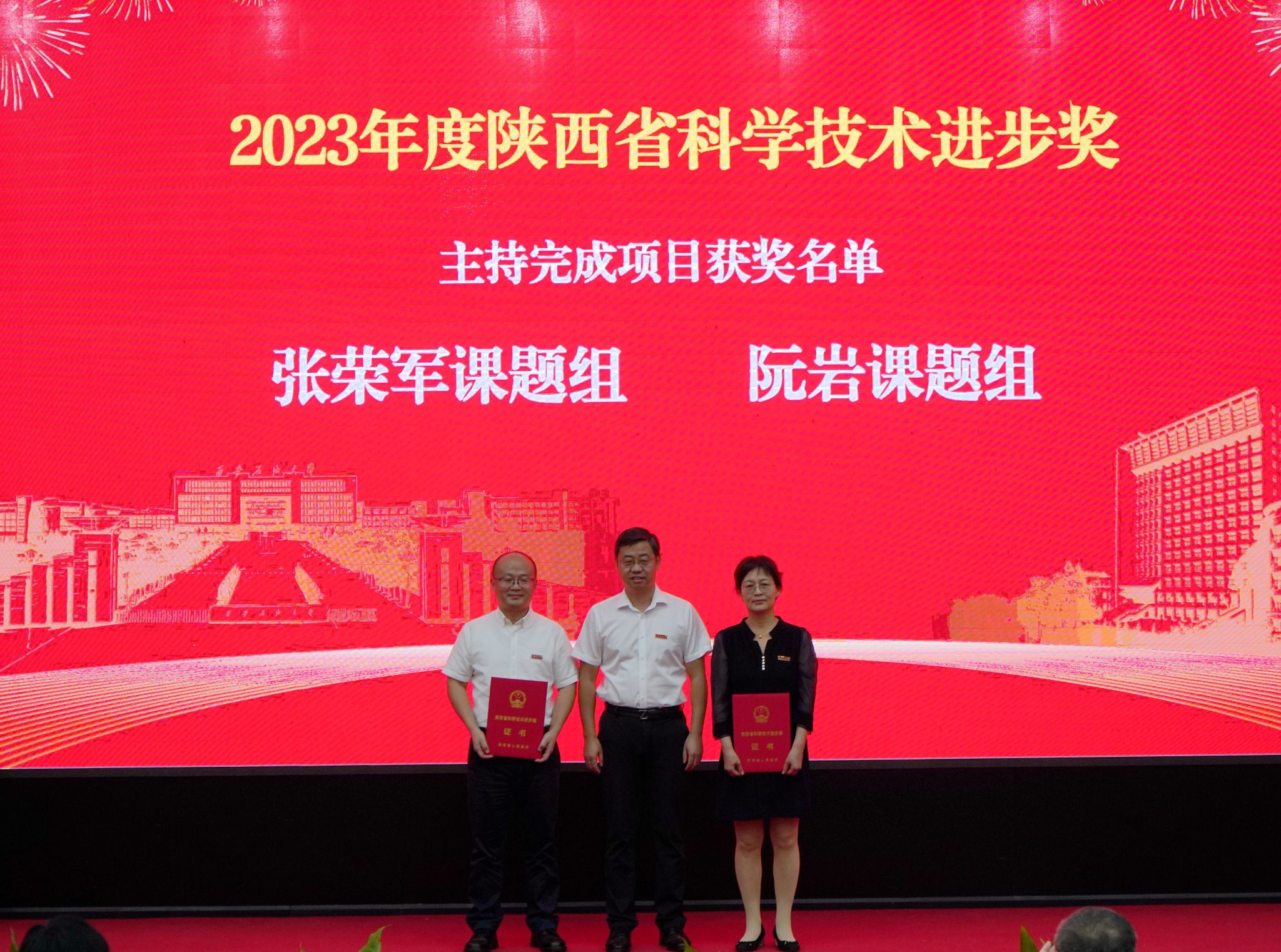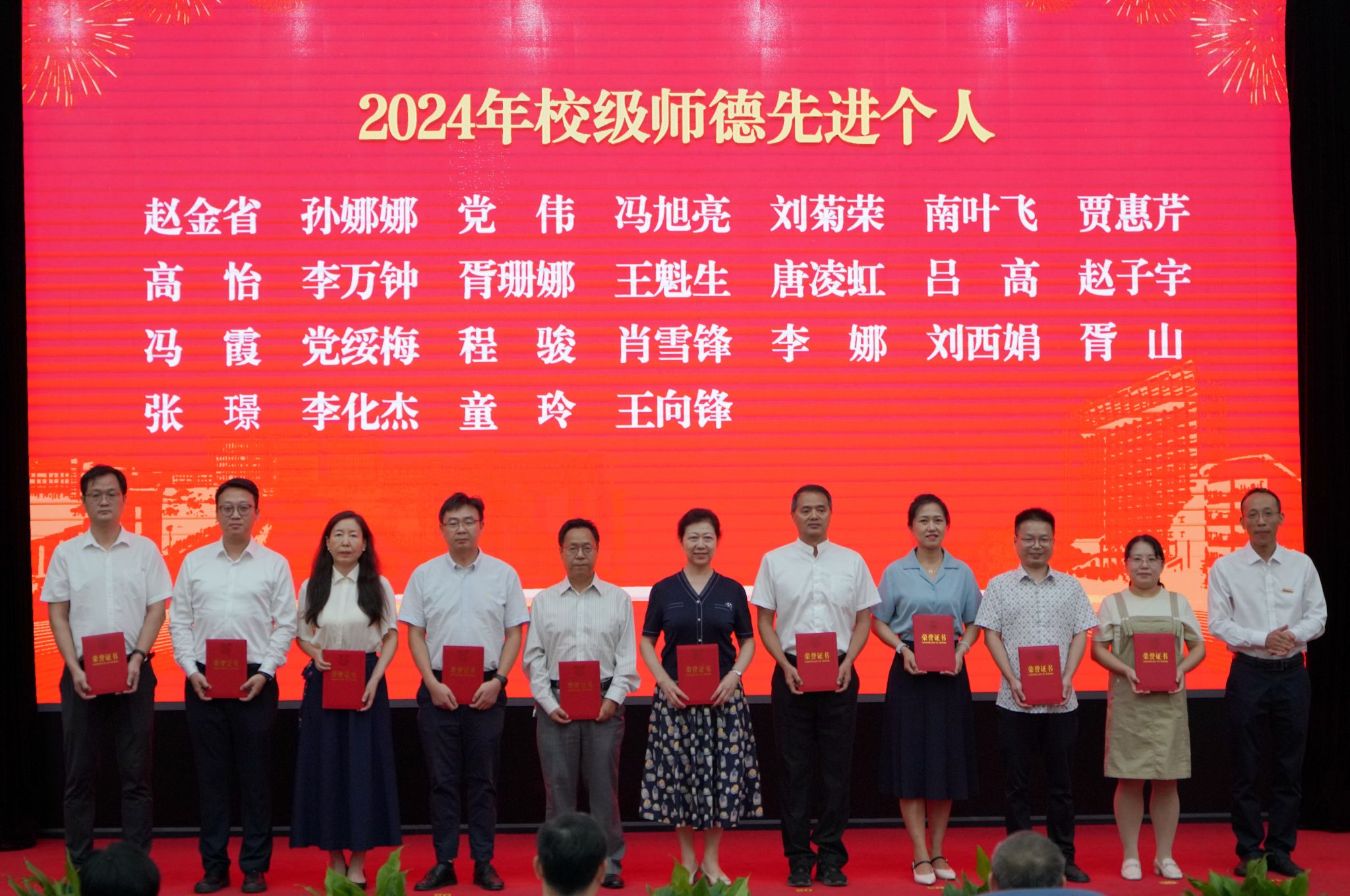 会上,校党委书记常江宣读了2024年全国模范教师、国务院政府特殊津贴专家和第三届全国高校思政课教学展示竞赛获奖名单,校长王进富宣读了2023年度陕西省科学技术进步奖和陕西省第十六次哲学社会科学优秀成果奖获奖项目名单,校党委副书记张木宣读了陕西省人才项目入选名单,校党委副书记、纪委书记、监察专员王辉强宣读了《陕西省教育厅关于公布第三批省级一流本科课程认定结果的通知》,副校长杨战社宣读了2023年陕西学校思政课程课程思政教师“大练兵”主题活动表现突出教师名单,副校长苏文甫宣读了2024年陕西省教科文卫体系统先进女职工集体和个人名单,副校长张荣军宣读了陕西省团学系统表彰名单,副校长张君涛宣读了《中共bat365中文官方网站委员会关于表彰2024年师德先进集体和先进个人的决定》,副校长赵健宣读了《中共bat365中文官方网站委员会 bat365中文官方网站关于表彰2024年优秀教师、先进教育工作者的决定》《bat365中文官方网站关于表彰奖励“教书育人30年”教师的决定》,总会计师樊晓民宣读了《关于表彰抗震救灾先进集体和先进个人的决定》,全体与会校领导为受表彰教师代表颁奖。