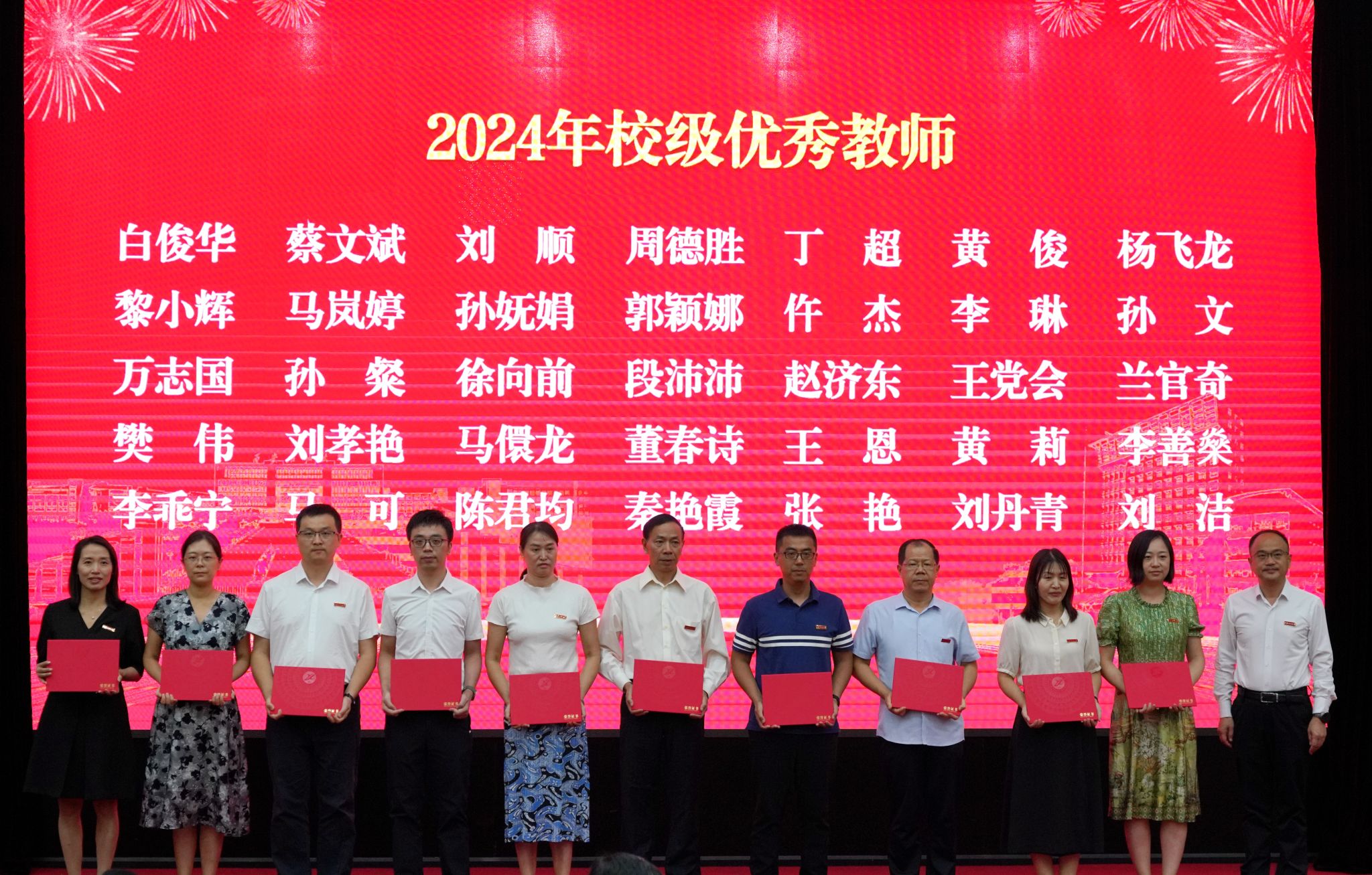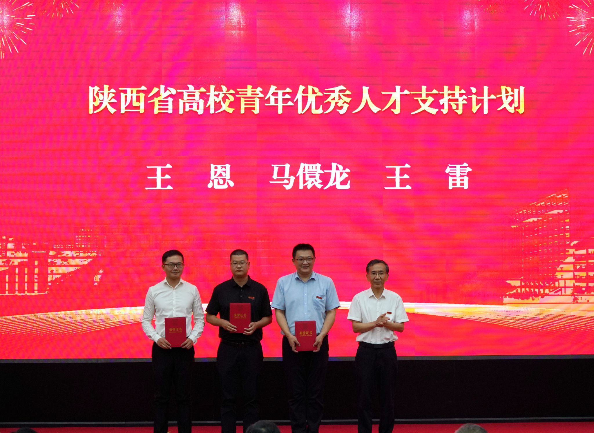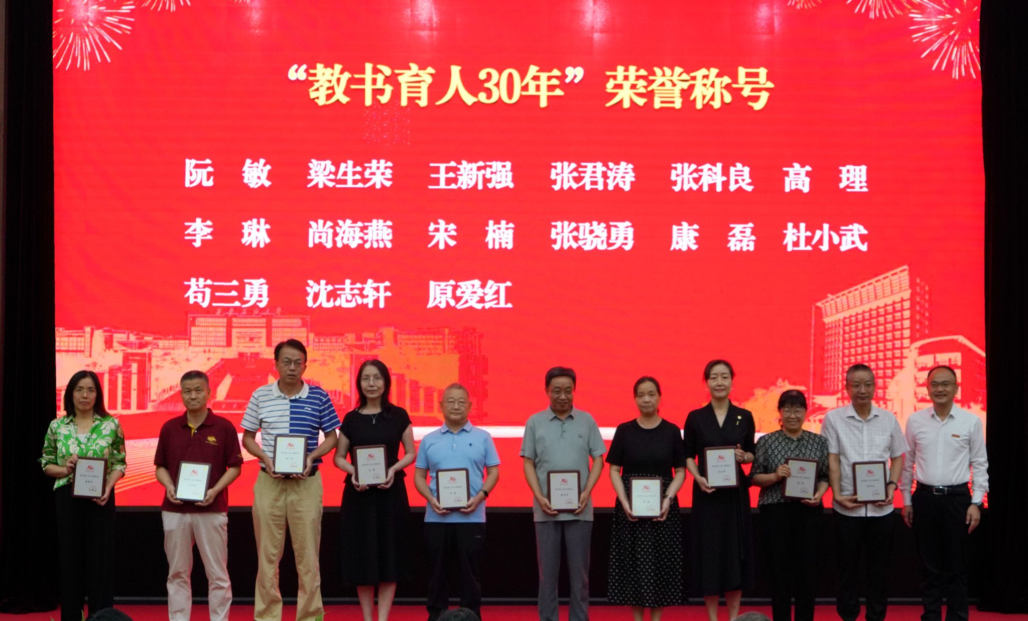 会上,校党委书记常江宣读了2024年全国模范教师、国务院政府特殊津贴专家和第三届全国高校思政课教学展示竞赛获奖名单,校长王进富宣读了2023年度陕西省科学技术进步奖和陕西省第十六次哲学社会科学优秀成果奖获奖项目名单,校党委副书记张木宣读了陕西省人才项目入选名单,校党委副书记、纪委书记、监察专员王辉强宣读了《陕西省教育厅关于公布第三批省级一流本科课程认定结果的通知》,副校长杨战社宣读了2023年陕西学校思政课程课程思政教师“大练兵”主题活动表现突出教师名单,副校长苏文甫宣读了2024年陕西省教科文卫体系统先进女职工集体和个人名单,副校长张荣军宣读了陕西省团学系统表彰名单,副校长张君涛宣读了《中共bat365中文官方网站委员会关于表彰2024年师德先进集体和先进个人的决定》,副校长赵健宣读了《中共bat365中文官方网站委员会 bat365中文官方网站关于表彰2024年优秀教师、先进教育工作者的决定》《bat365中文官方网站关于表彰奖励“教书育人30年”教师的决定》,总会计师樊晓民宣读了《关于表彰抗震救灾先进集体和先进个人的决定》,全体与会校领导为受表彰教师代表颁奖。