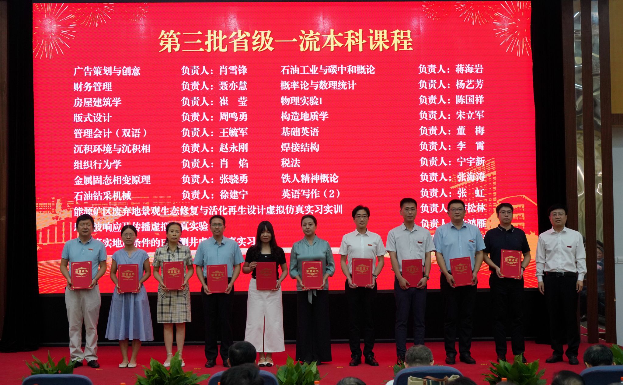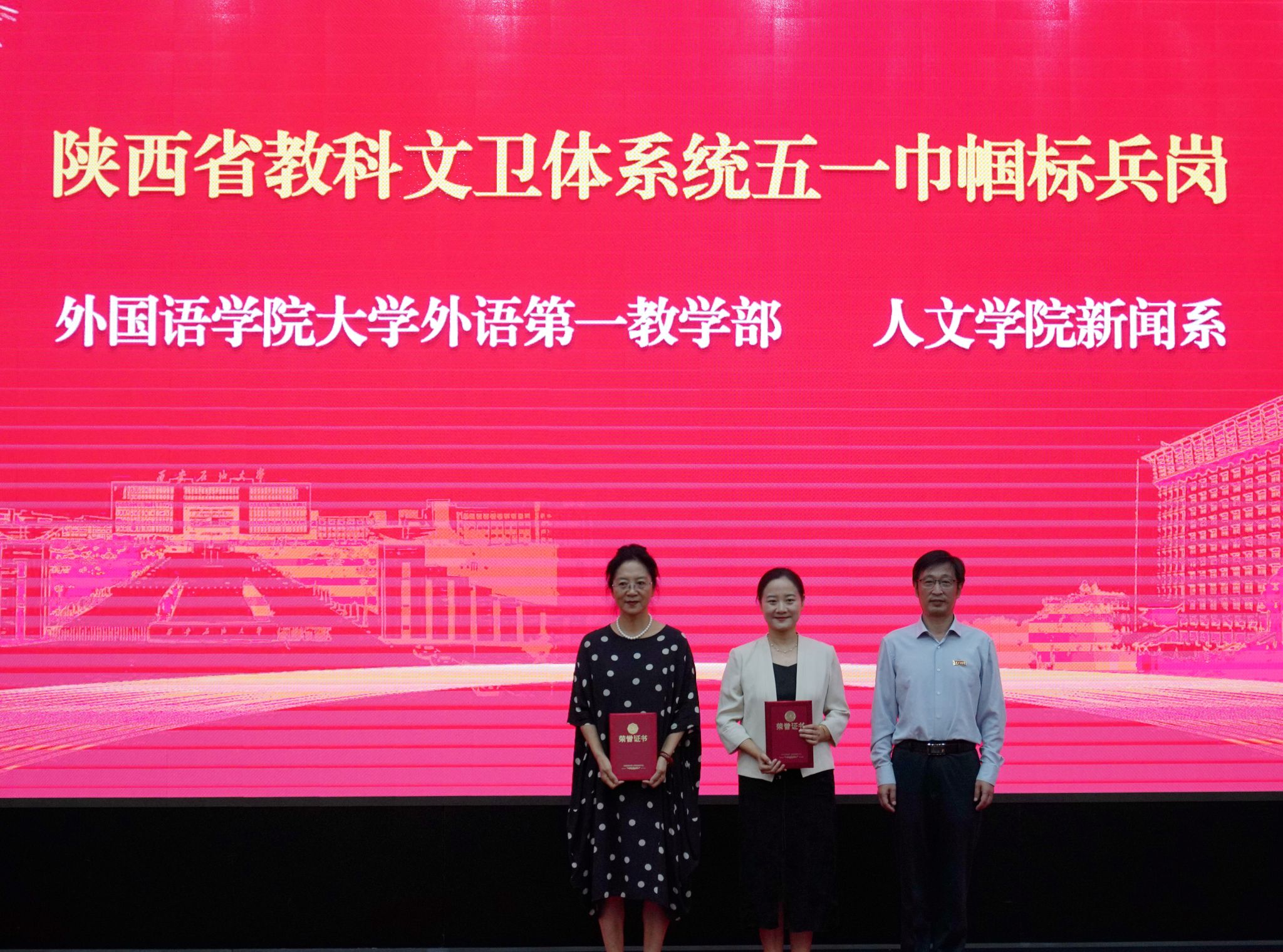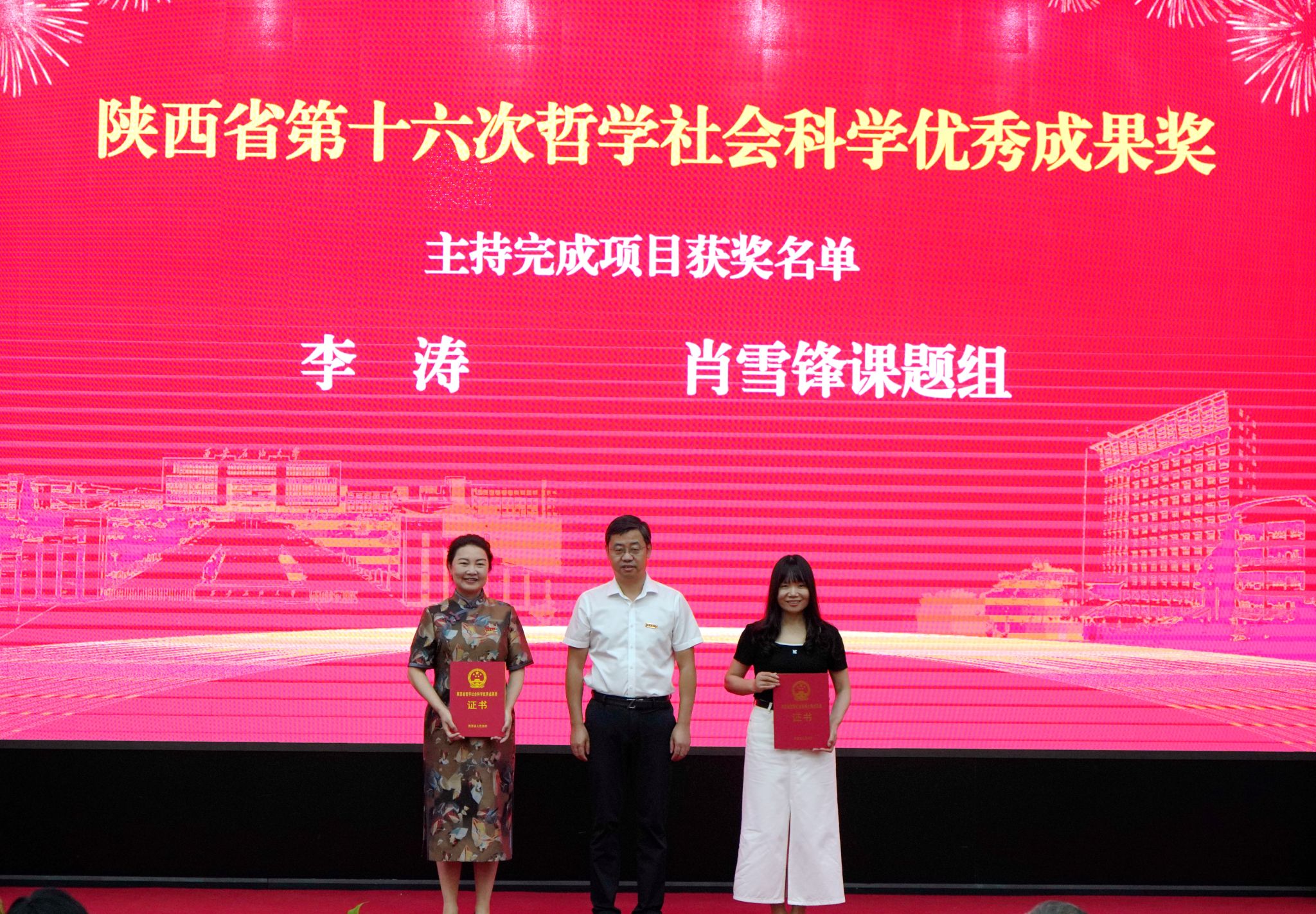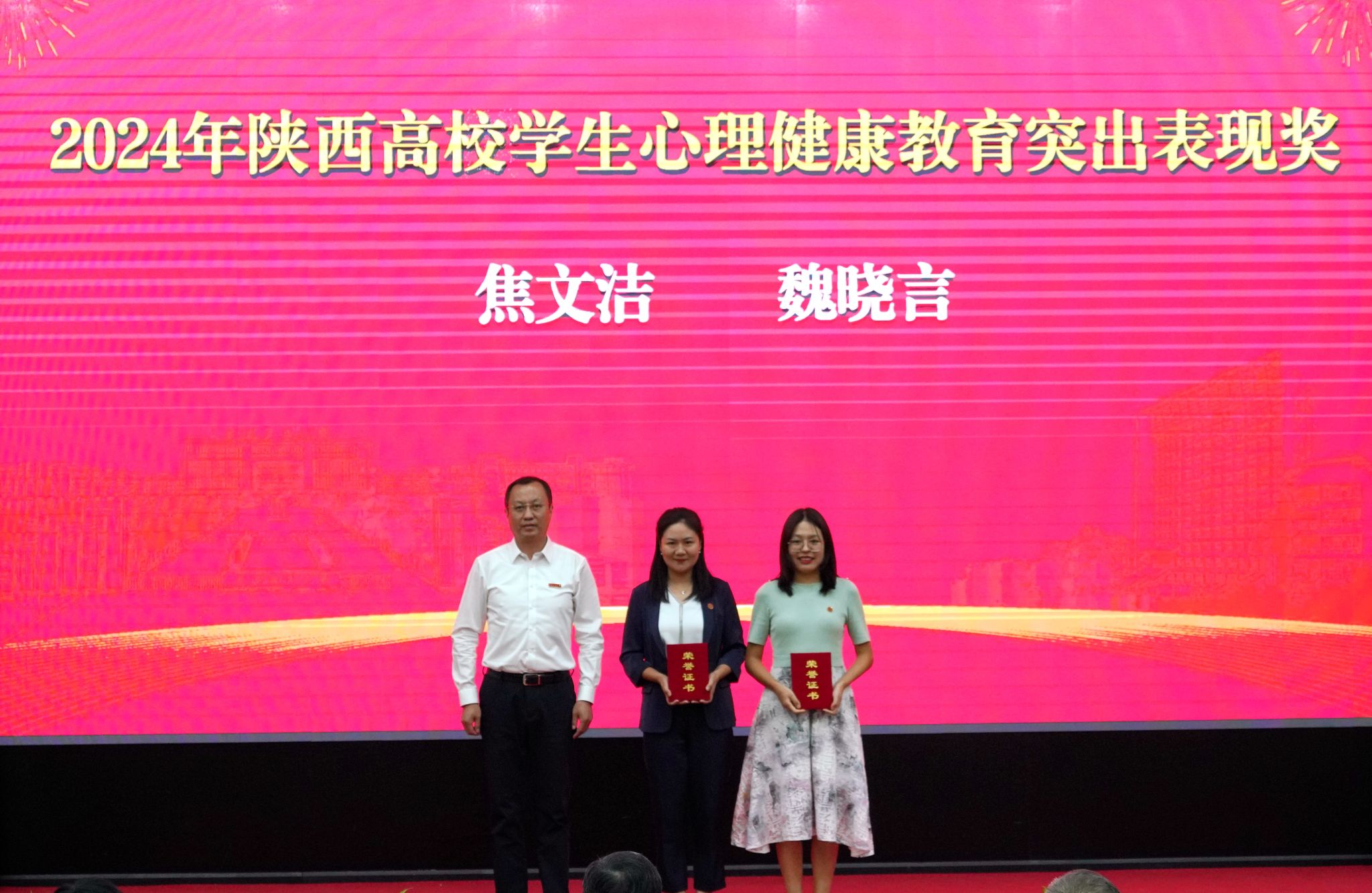 会上,校党委书记常江宣读了2024年全国模范教师、国务院政府特殊津贴专家和第三届全国高校思政课教学展示竞赛获奖名单,校长王进富宣读了2023年度陕西省科学技术进步奖和陕西省第十六次哲学社会科学优秀成果奖获奖项目名单,校党委副书记张木宣读了陕西省人才项目入选名单,校党委副书记、纪委书记、监察专员王辉强宣读了《陕西省教育厅关于公布第三批省级一流本科课程认定结果的通知》,副校长杨战社宣读了2023年陕西学校思政课程课程思政教师“大练兵”主题活动表现突出教师名单,副校长苏文甫宣读了2024年陕西省教科文卫体系统先进女职工集体和个人名单,副校长张荣军宣读了陕西省团学系统表彰名单,副校长张君涛宣读了《中共bat365中文官方网站委员会关于表彰2024年师德先进集体和先进个人的决定》,副校长赵健宣读了《中共bat365中文官方网站委员会 bat365中文官方网站关于表彰2024年优秀教师、先进教育工作者的决定》《bat365中文官方网站关于表彰奖励“教书育人30年”教师的决定》,总会计师樊晓民宣读了《关于表彰抗震救灾先进集体和先进个人的决定》,全体与会校领导为受表彰教师代表颁奖。