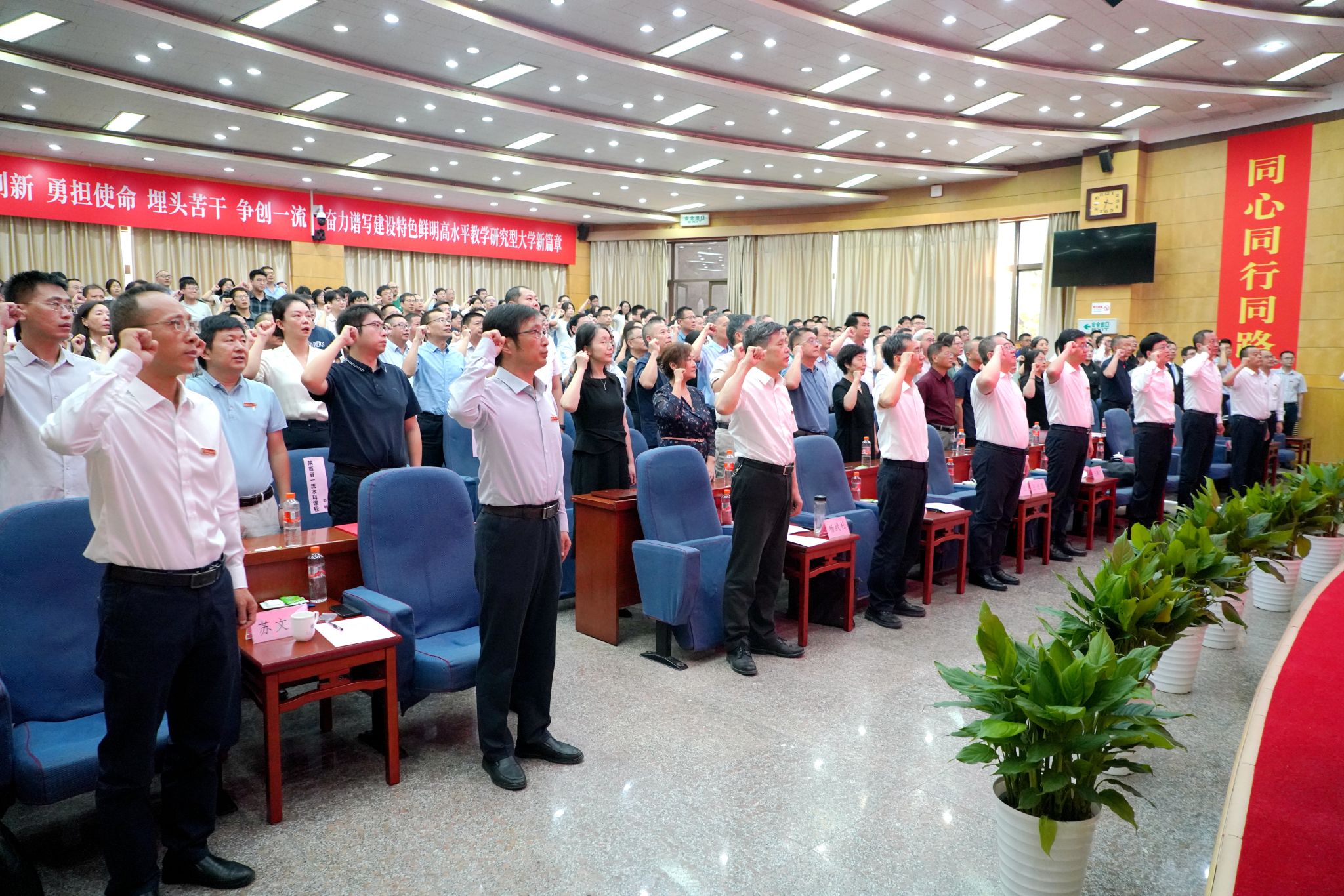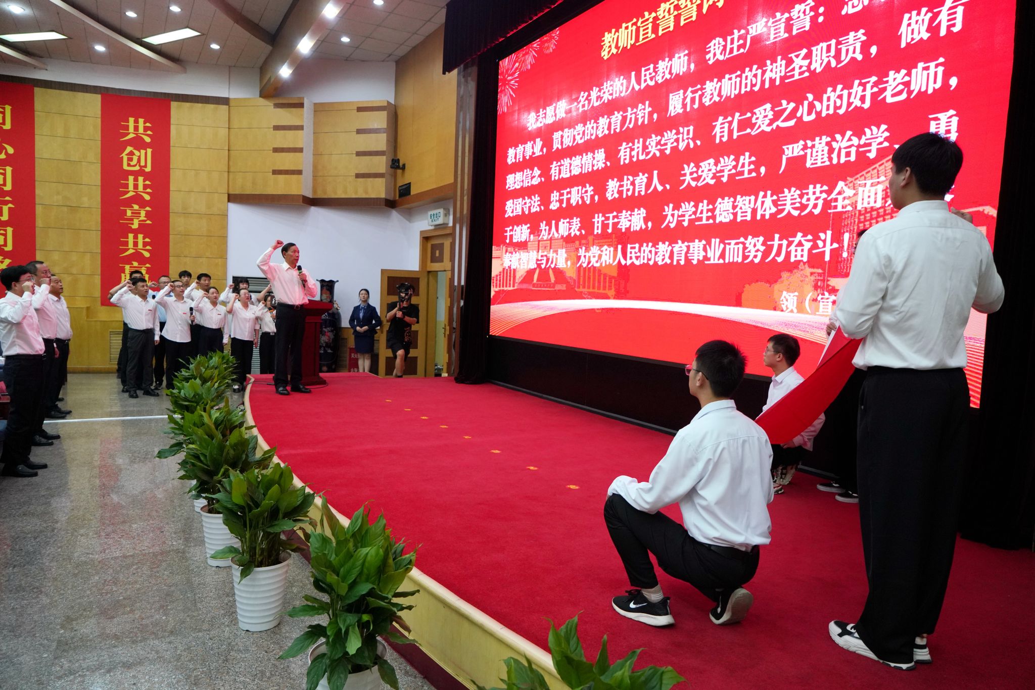 立德树人育桃李,栉风沐雨做园丁。在教师宣誓仪式上,全体参会人员集体宣誓,表达努力成为“四有好老师”,为学生德智体美劳全面发展奉献智慧与力量、为党和人民的教育事业而努力奋斗的决心。