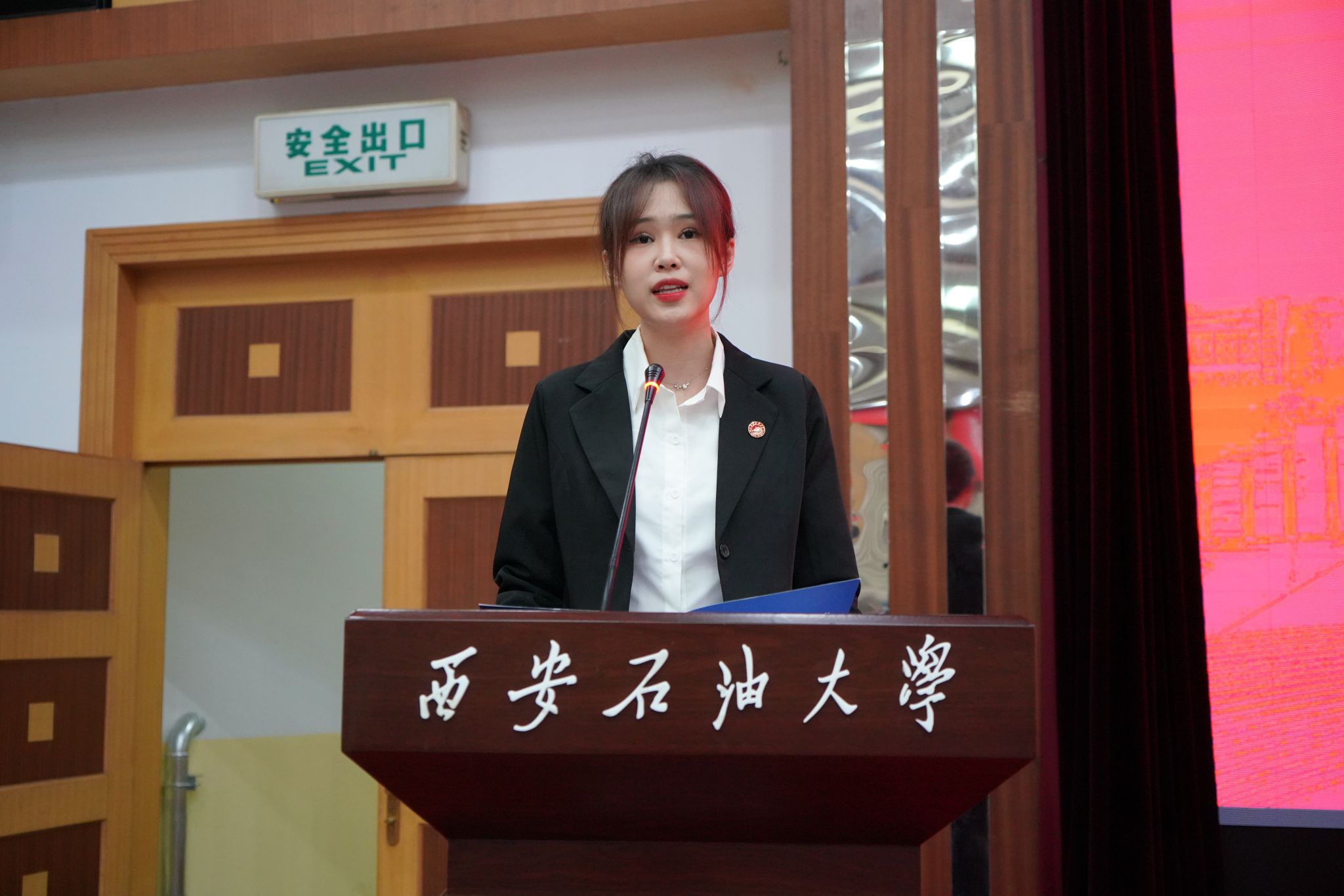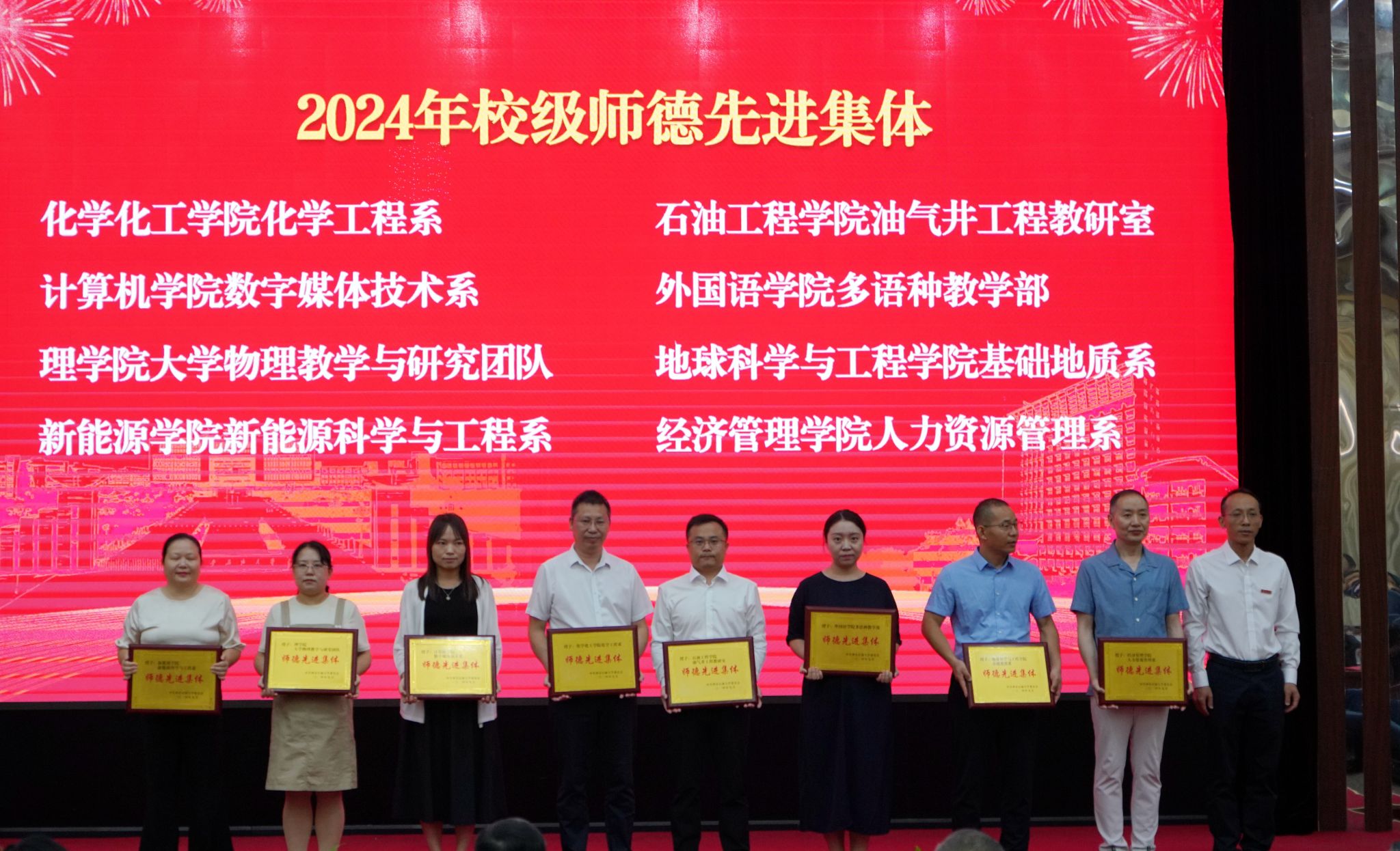 在师生发言环节,化学化工学院黄风林教授、理学院折延宏教授分别作为师德先进个人代表和优秀教师代表进行发言,分享了自己在教育教学、学术科研和职业发展等方面的心得体会。学生代表、石油工程学院2023级研究生于竞雯致感谢师恩献词,表达了感念师恩、礼赞教师的真挚情意。