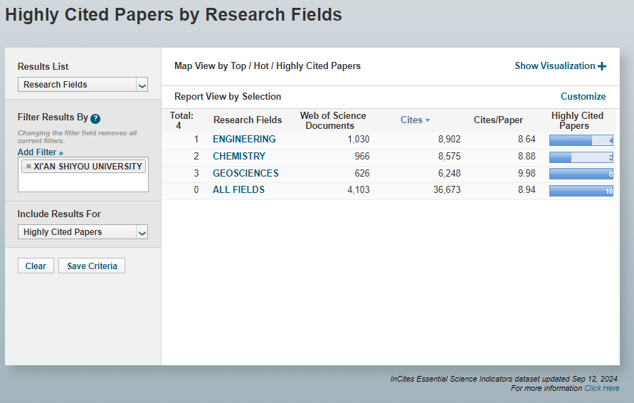 科睿唯安2024年9月公布的《基本科学指标数据库》(Essential Science Indicators,简称ESI)最新统计数据显示,bat365地球科学学科进入ESI全球排名前1%,实现重要突破。至此,bat365已有工程学、化学、地球科学3个学科进入ESI全球排名前1%。