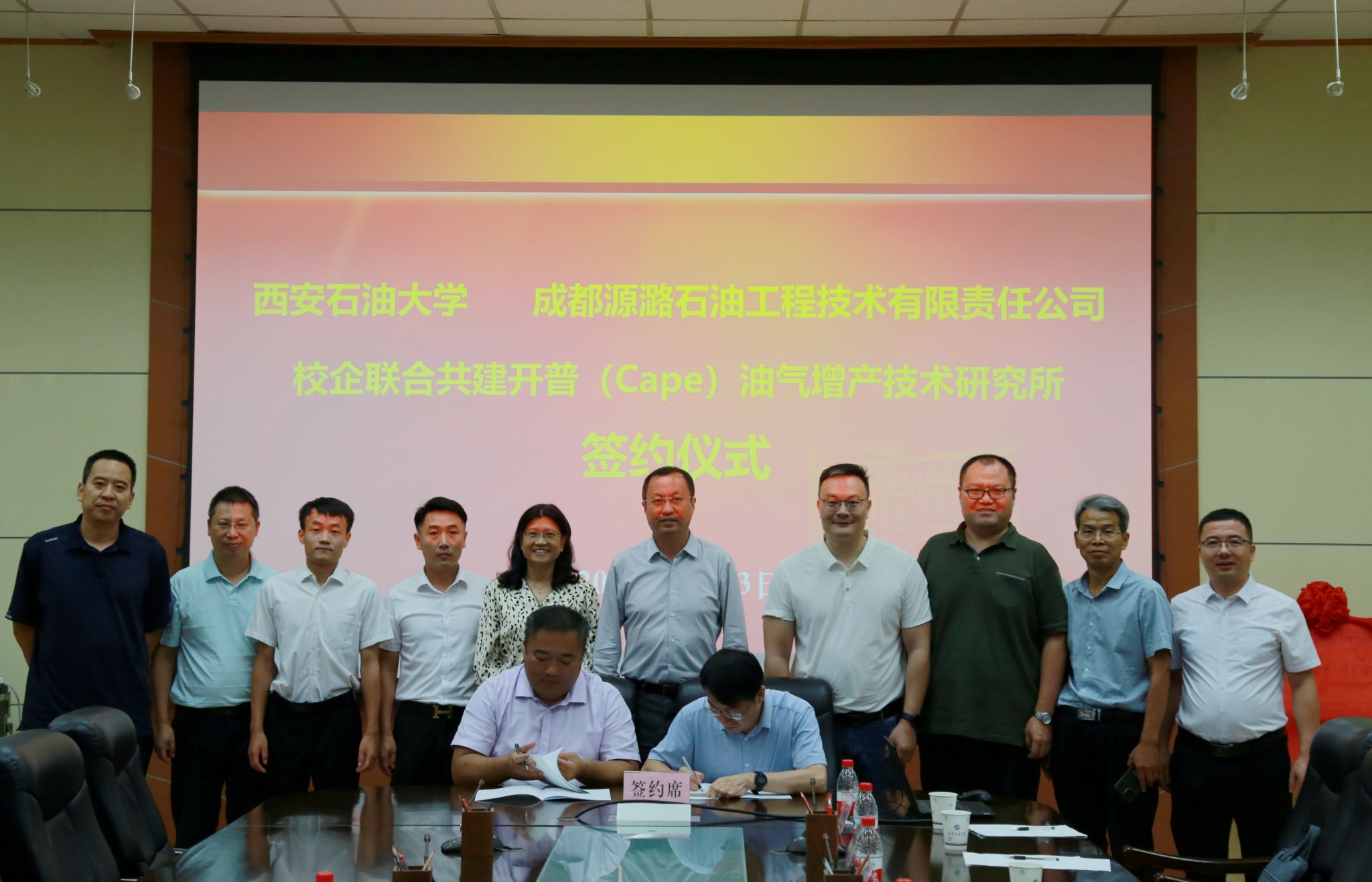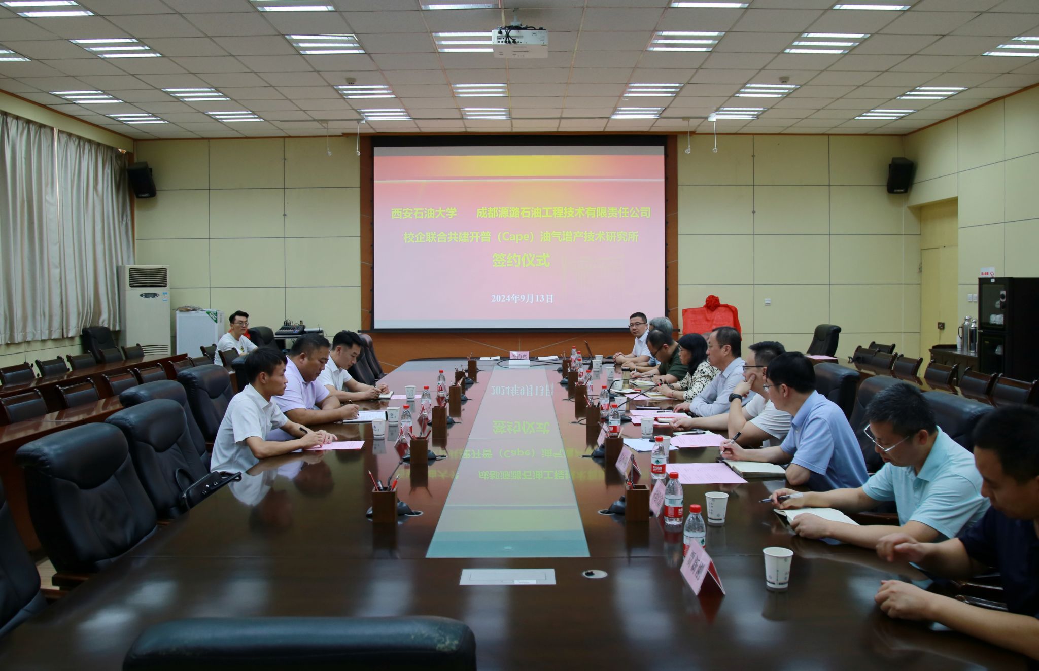 9月13日上午,bat365中文官方网站与成都源潞石油工程技术有限责任公司校企联合共建开普(Cape)油气增产技术研究所签约仪式在学校雁塔校区会议中心第一会议室举行,副校长张荣军出席签约仪式,成都源潞石油工程技术有限责任公司总经理陈造峰及有关部门负责人,科研处副处长屈乐,化学化工学院领导班子成员、各系主任、分析检测中心主任参加仪式。