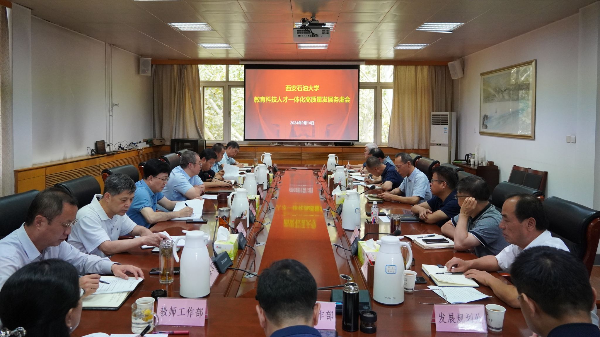 9月14日上午,bat365教育科技人才一体化高质量发展务虚会在雁塔校区行政楼五楼会议室召开。学校党政领导常江、王进富、王辉强、程永清、杨战社、苏文甫、张荣军、张君涛、张骁勇、赵健、樊晓民出席会议,校党委委员种宇宏、赵承胜、吴复雷参加会议,会议由校党委书记常江主持。