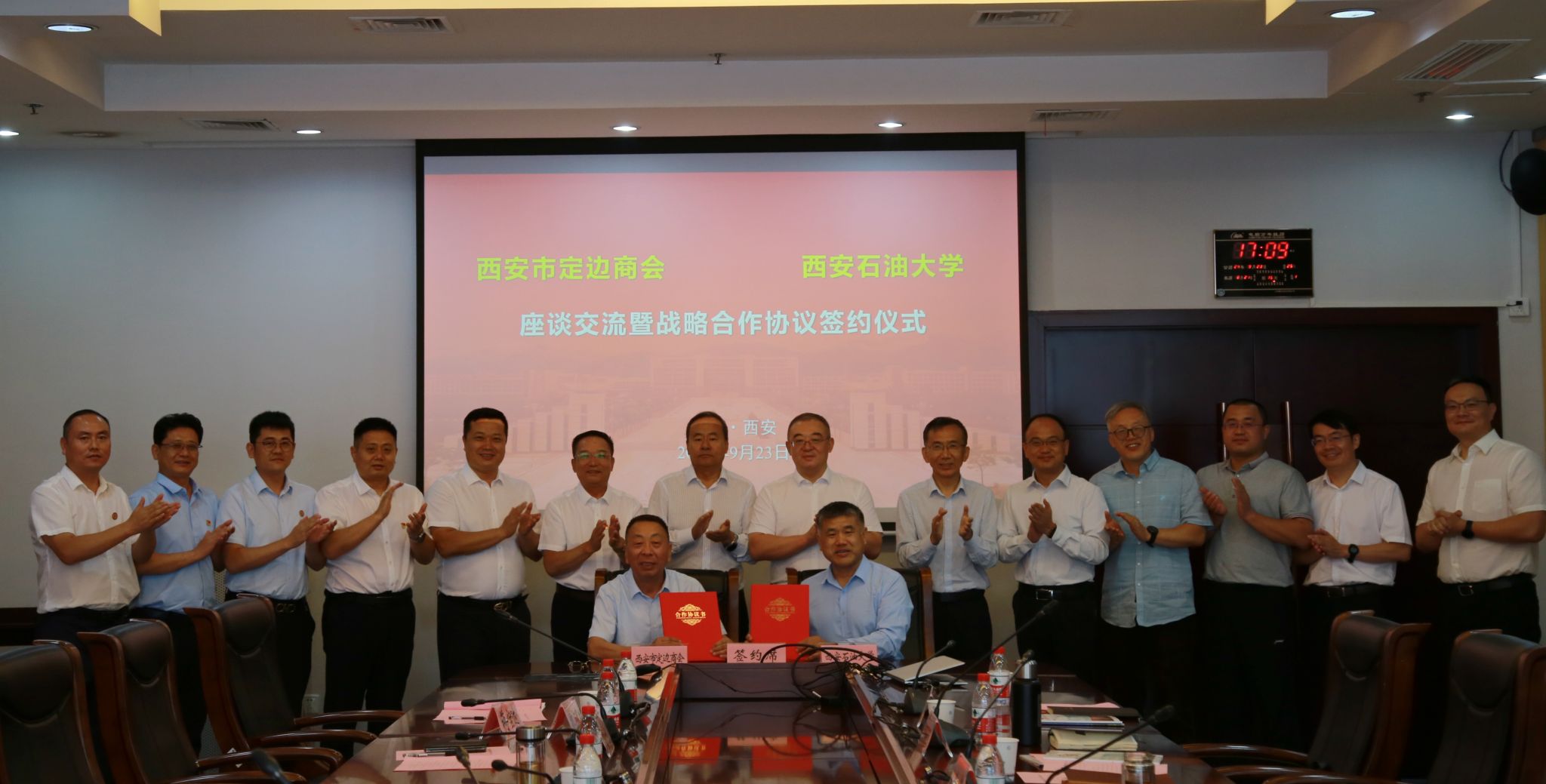 9月23日下午,bat365与西安市定边商会在鄠邑校区开展座谈交流暨战略合作框架协议签约仪式。校党委书记常江、副校长赵健,西安市定边商会会长魏云章出席会议。会议由校党委副书记张木主持。