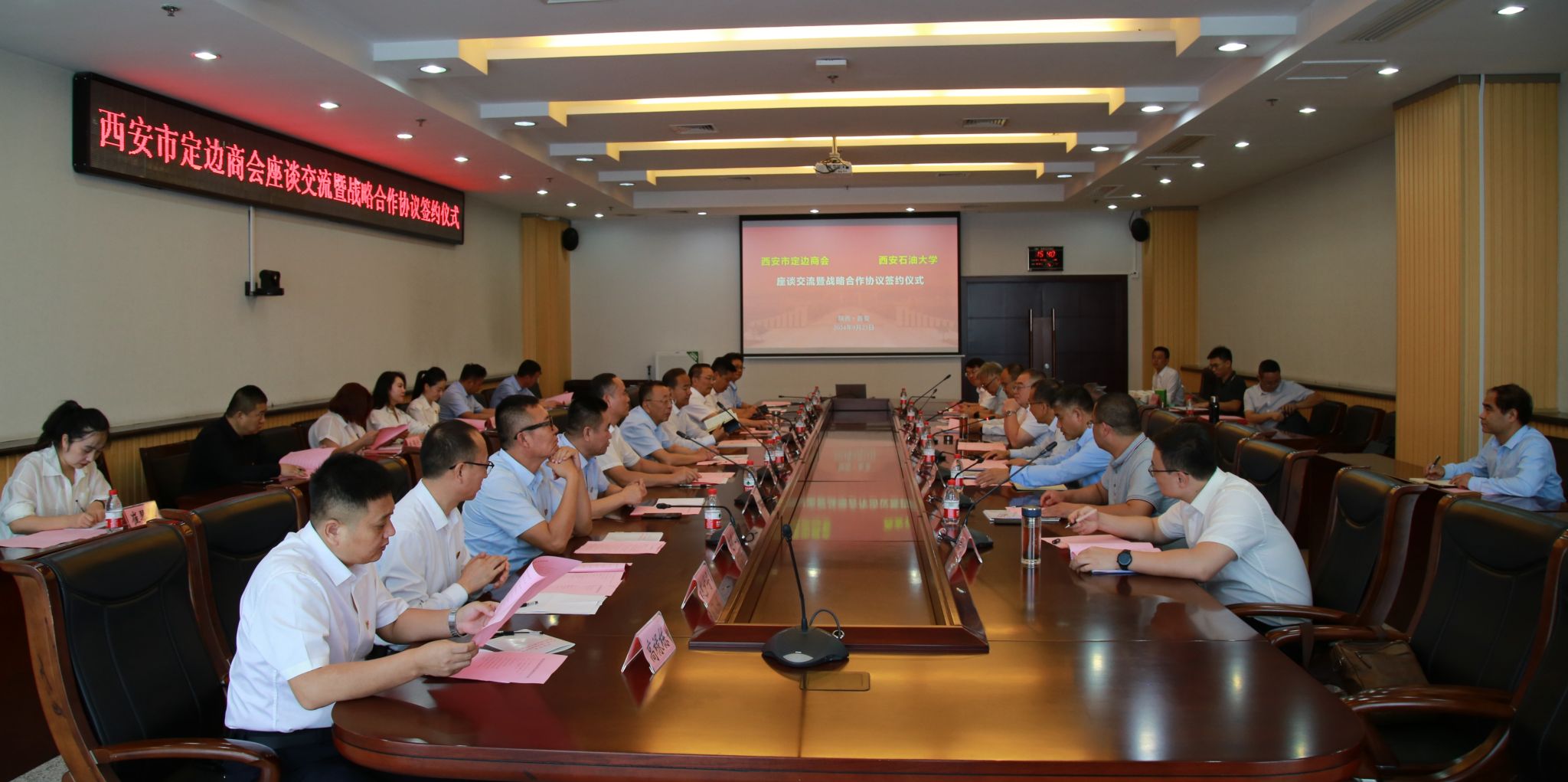 西安市定边商会部分理事会成员单位;bat365科研处、校友工作与合作交流处、石油工程学院、化学化工学院负责人参加会议。