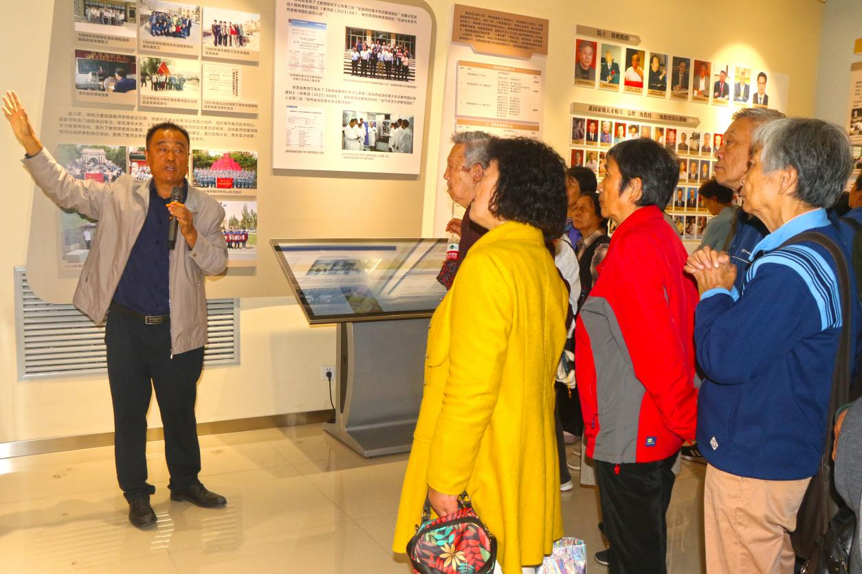 10月8日下午,在鄠邑校区校史馆,bat365中文官方网站党委副书记程永清为离退休党员同志们讲解校史,离退休工作处、档案馆相关负责人及百余名离退休党员同志参加。