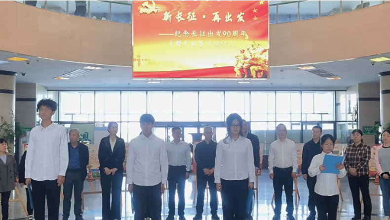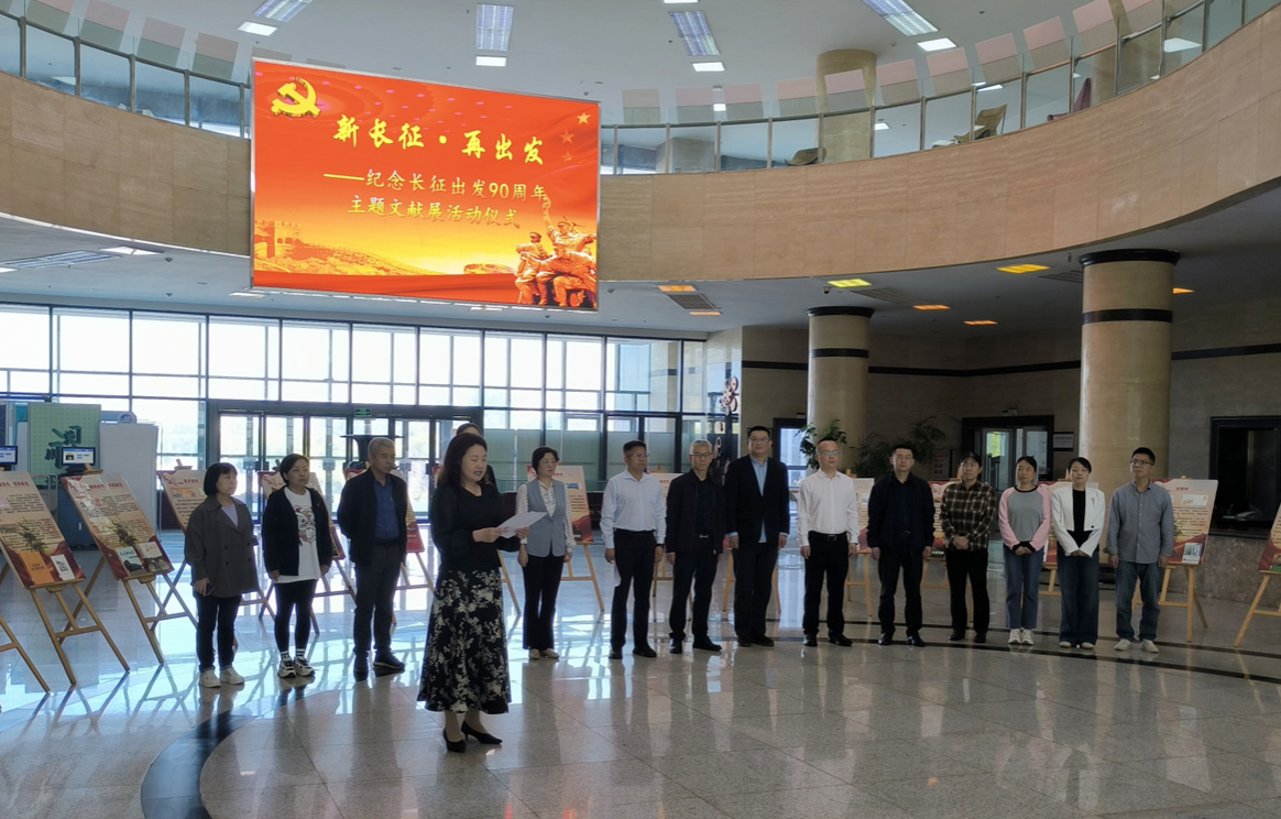 为纪念红军长征出发90周年,引导师生读者弘扬和继承长征精神,缅怀革命先辈的丰功伟绩,10月9日上午,图书馆、马克思主义学院、人文学院在鄠邑校区图书馆联合举办“新长征·再出发”纪念长征出发90周年主题文献展。副校长张骁勇出席开幕式。相关部门、学院负责人,图书馆工作人员,马克思主义学院、人文学院学生代表共计80余人参加活动。