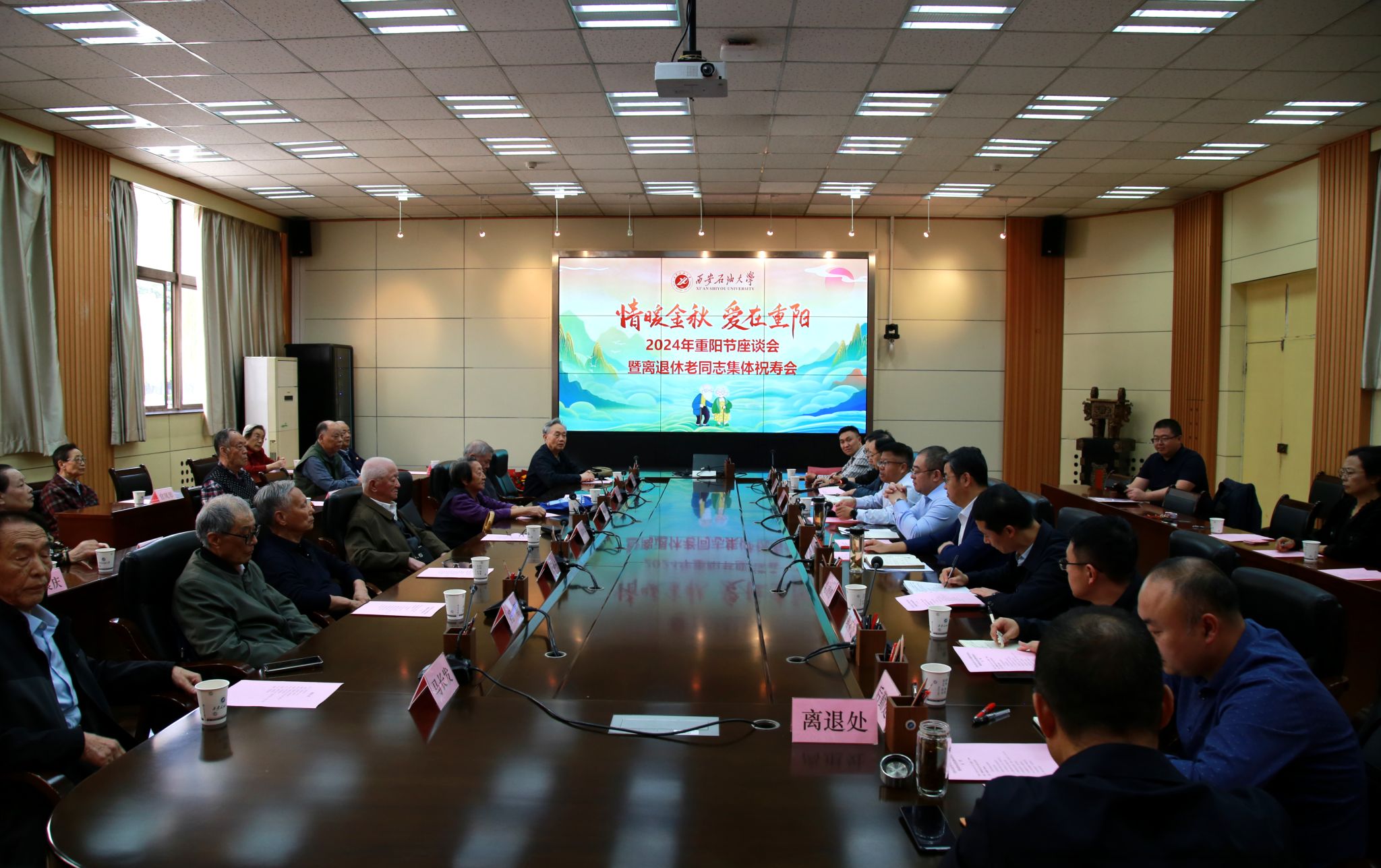 10月10日下午,bat365在雁塔校区第二会议室为今年80周岁、85周岁、90周岁的老同志召开了重阳节座谈会暨离退休老同志集体祝寿会。校党委书记常江、校长王进富出席,党委办公室(校长办公室)、组织部、教务处、科研处、后勤处、离退休工作处、校医院等单位负责人,老寿星代表及特邀老同志代表参加会议。副校长张骁勇主持会议。