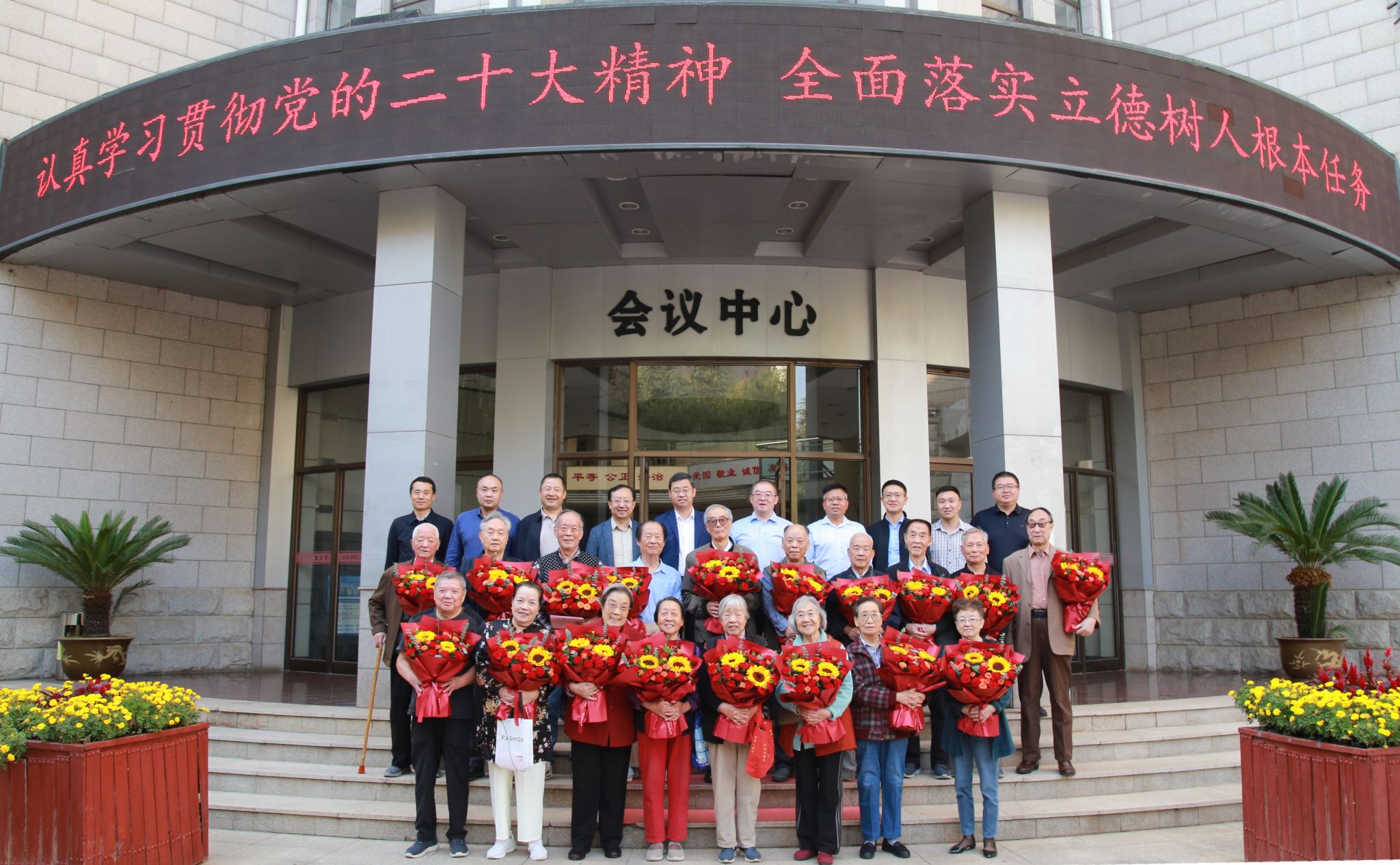会后,学校领导与老寿星代表合影留念。常江、王进富、张骁勇参观了离退休教职工书画摄影艺术展。