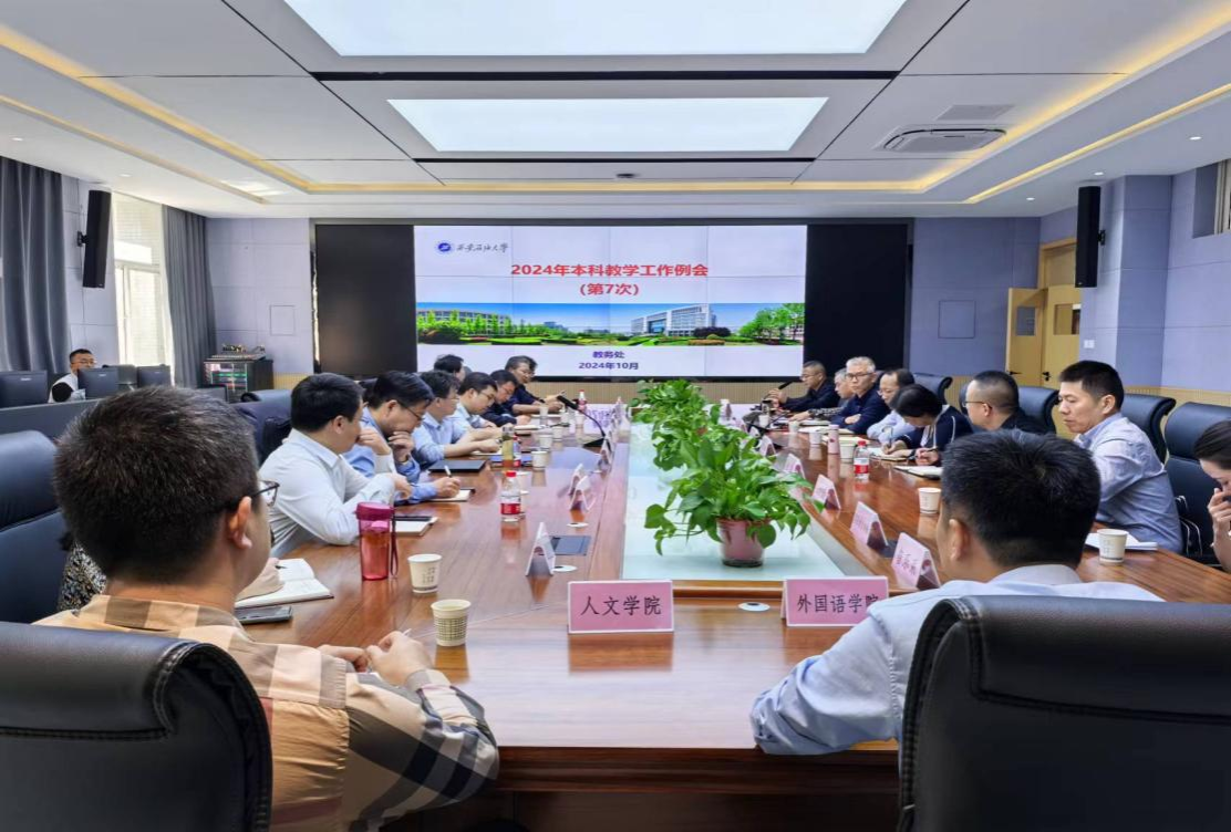 张君涛对开学以来本科教学各项工作的有序开展给予了充分肯定,他指出,本学期教育教学工作仍要紧密围绕审核评估整改工作,以2025版本科人才培养方案修订为契机,聚焦本科人才培养水平和质量。他强调,要做好后续工作需做到以下几点:一是要严格教学管理,高度重视人才培养质量提升。各院系与职能部门要加强沟通,紧密配合,采取切实有效的措施,加强教风学风协同建设,严格落实教师职责,杜绝照本宣科,多举并措提升教学成效,形成齐抓共管良好氛围。二是要加大学生关爱力度,重视学生成长成才。学校贯彻以生为本的教育教学理念,对存在学业困难的学生应及时予以警示性提示,积极开展有效的指导与帮扶,引导学生顺利完成学业,确保本科人才培养质量。三是要深化教育教学改革,超常规创新人才培养模式。结合人工智能发展趋势,在人才培养方案修订、课程、教材等专业建设各方面全方位进行改革,统筹专业优化升级改造,以课程建设为抓手,注重课程思政建设、数字化课程建设,数字化教学改革。四是要加强招生宣传,吸收优质生源。要高度重视招生宣传工作,进一步加大宣传力度,招生宣传的基础是做好教育教学工作,因此要协同联动,科学优化专业结构,创新人才培养模式,进一步提高学校生源质量。五是要提高实验室建设效能和质量。加快实验室项目建设进度,保证建设经费有效性,同时要结合平台建设、人才培养模式修订等工作,尽快筹划下一年度实验室建设项目,持之以恒做好实验室建设与管理。六是要做好教学督导质量评价工作。各院系做好新一届教学督导人员换届工作,加强常态化教学质量监控,为规范教学管理,维护教学秩序,促进校风、教风、学风建设,提高人才培养质量,推动学校高质量发展作出贡献。同时要做好2024年高等教育质量监测国家数据平台数据更新采集工作,保障学校审核评估整改等重要工作的顺利进行。七是要勤思考、善谋划、重落实。教学管理人员责任重大、任务艰巨,各院系要贯彻落实学校及职能部门安排部署的工作任务,特别是人才培养方案的修订及审核评估整改工作,进一步明确自身教学发展思路及发展目标,积极建立发展举措,确保各项教育教学工作高效有序开展。