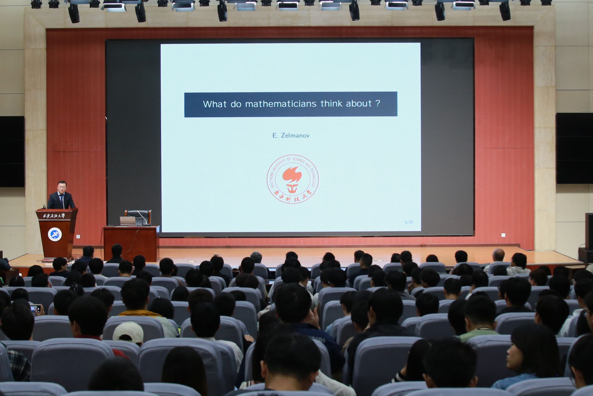 10月16日上午,bat365第八期终南山讲坛在鄠邑校区图书馆弘石学术报告厅举行。国际著名数学家、菲尔兹奖获得者、中国科学院外籍院士、美国科学院院士、美国艺术与科学院院士、西班牙皇家科学院院士、南方科技大学杰曼诺夫数学中心主任Efim Zelmanov教授受邀作了题为“What do mathematicians think about”的学术报告。科研处、理学院有关负责人,计算机学院、理学院、经济管理学院师生等近400人参加报告。