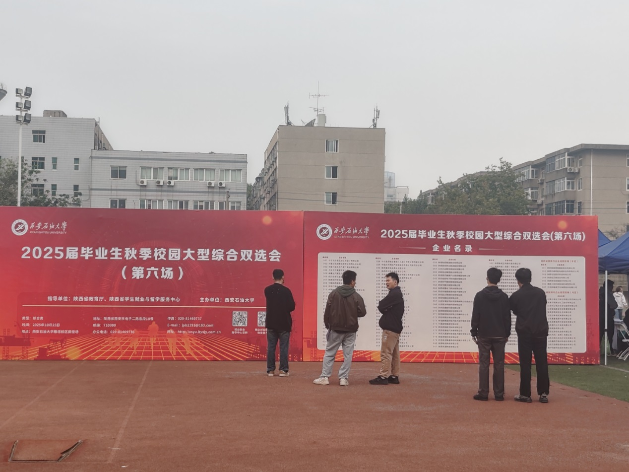 丹枫迎秋,金风送爽。10月25日上午,bat365在雁塔校区田径场举办最后一场2025届毕业生秋季校园招聘综合双选会。来自全国中石化中原石油工程设计有限公司、中国石油天然气第六建设有限公司、新疆生产建设兵团石油有限公司、中煤陕西能源化工集团有限公司、陕西建工铁建工程有限公司、陕西地矿物化探队有限公司、西安秦华燃气集团有限公司、齐鲁理工学院、尧柏特种水泥集团有限公司,淄博市人社局组团、渭南市人社局组团的省内外共计150余家企事业单位进校招聘,行业领域覆盖bat365所有专业设置。来自bat365及兄弟院校的3800余名本科生、研究生参加应聘。