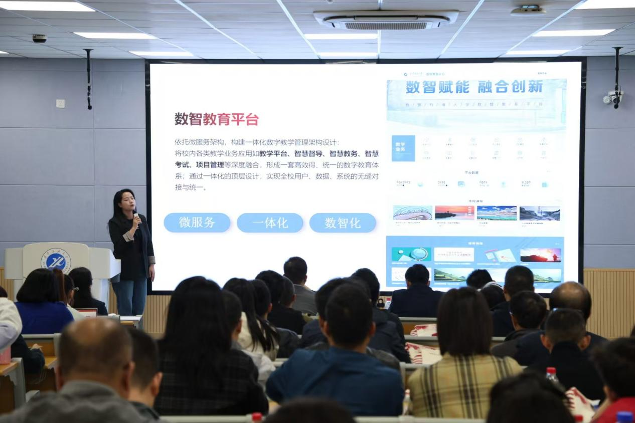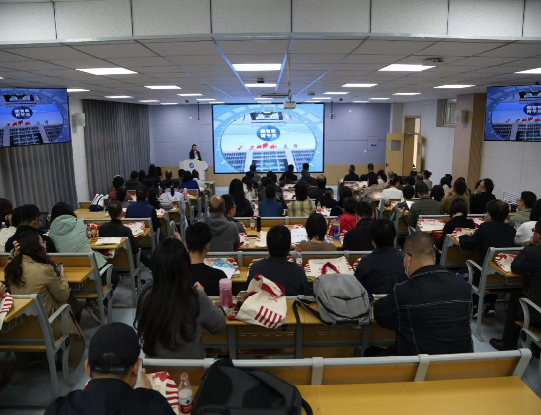 为全面落实国家教育数字化战略行动部署,落实学校第三次党代会精神,扎实推进智慧办学,加快推进学校数字化转型和人工智能在教育教学中的应用。10月23日和10月25日,学校分别在雁塔校区会议中心和鄠邑校区智慧教室举办智慧教育大会第一阶段教师数字化教学能力培训会,本次培训会包含3讲专题报告、2讲培训报告和2讲实操演示交流。