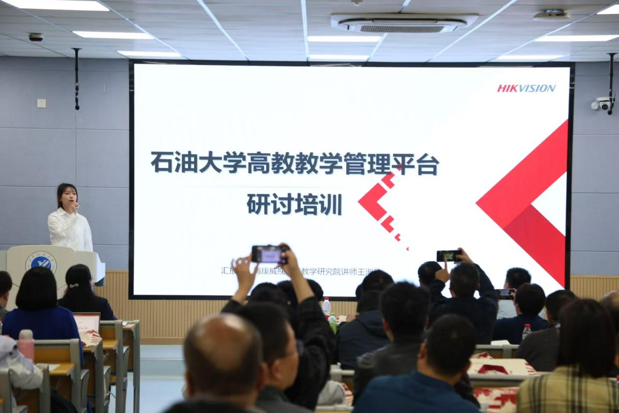 海康威视智慧教学研究院高级讲师作了题为《高校教学管理平台及信息化教学设备深度研讨》的培训,他通过理论讲解与操作演示相结合的方式,介绍了学校教学管理平台软硬件的基本功能、操作技巧、应用方法、故障排查等。