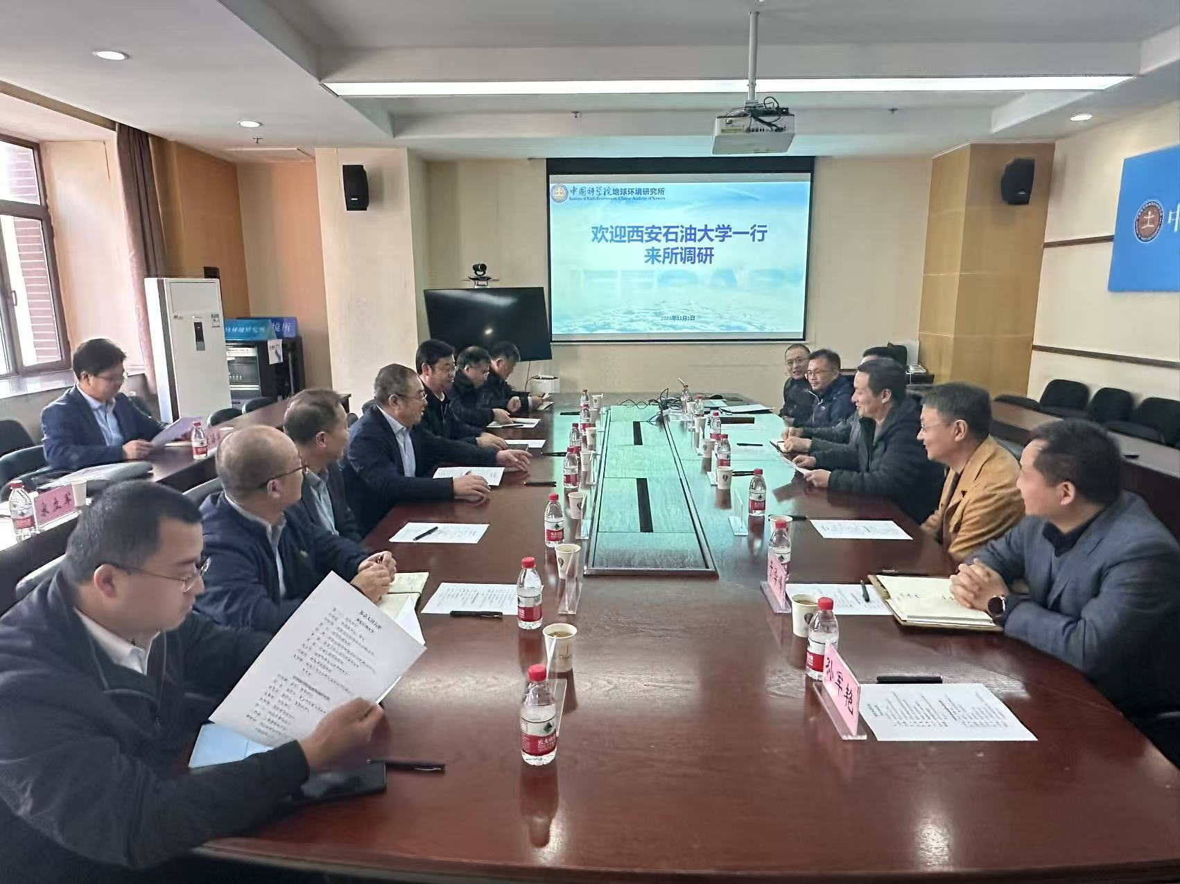 11月5日下午,bat365党委书记常江、校长王进富带队赴中国科学院地球环境研究所(以下简称“地环所”)就进一步深化校所合作事宜开展座谈交流。地环所副所长晏宏、金章东出席座谈会。座谈会由地环所所长、党委书记孙有斌主持。