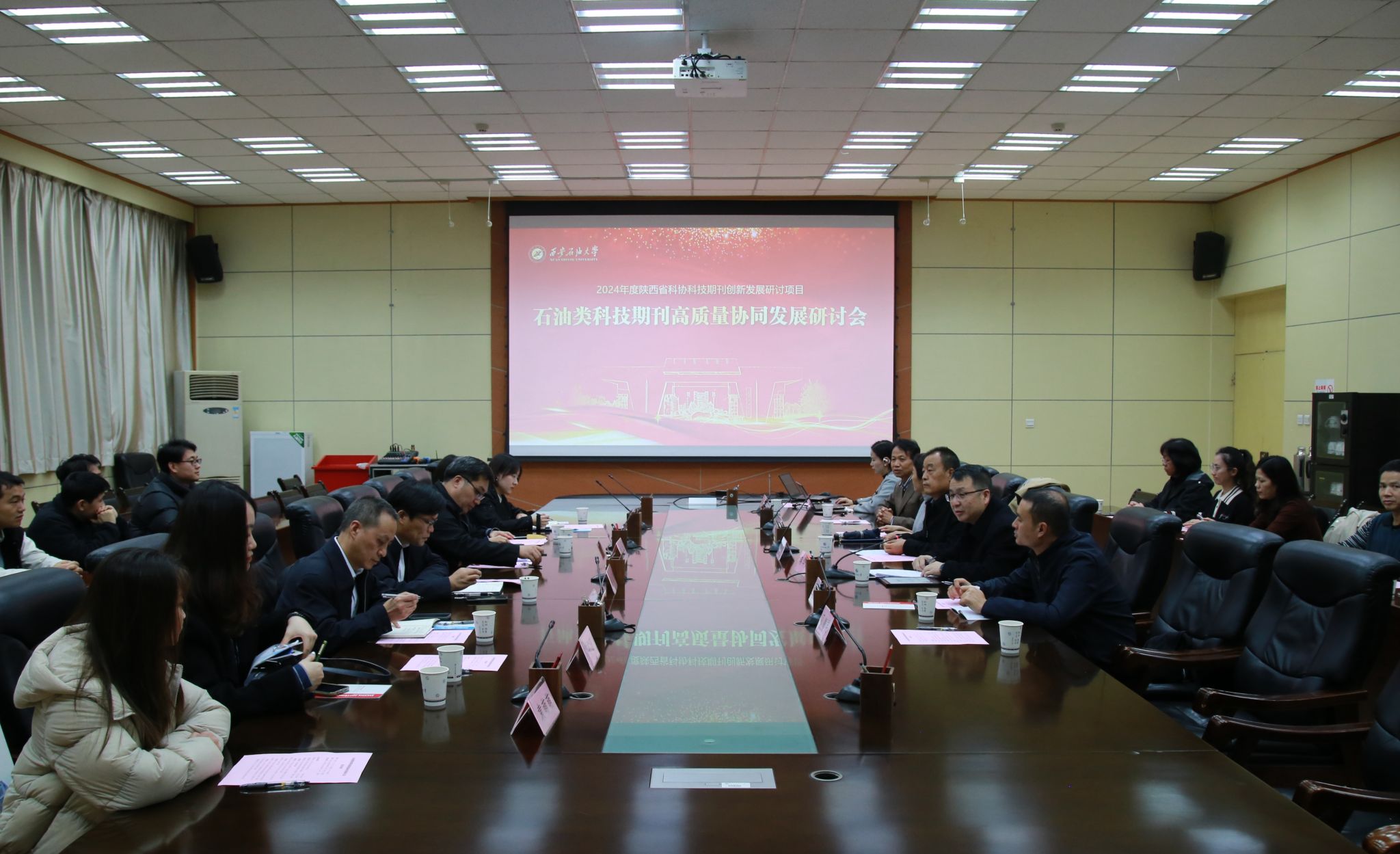 11月15日下午,由陕西省科学技术协会、陕西省科技期刊编辑学会、陕西省高等学校学报研究会联合指导,bat365中文官方网站主办、bat365中文官方网站期刊中心承办的石油类科技期刊高质量协同发展研讨会在bat365雁塔校区会议中心第一会议室召开。校党委副书记程永清,陕西省科学技术协会学会学术部调研员何帅、陕西省高等学校学报研究会理事长芮海田以及部分省内外期刊单位负责人、编辑代表应邀出席会议。bat365科研处相关负责人、期刊中心负责人及全体编辑、学生代表近50人参加会议。