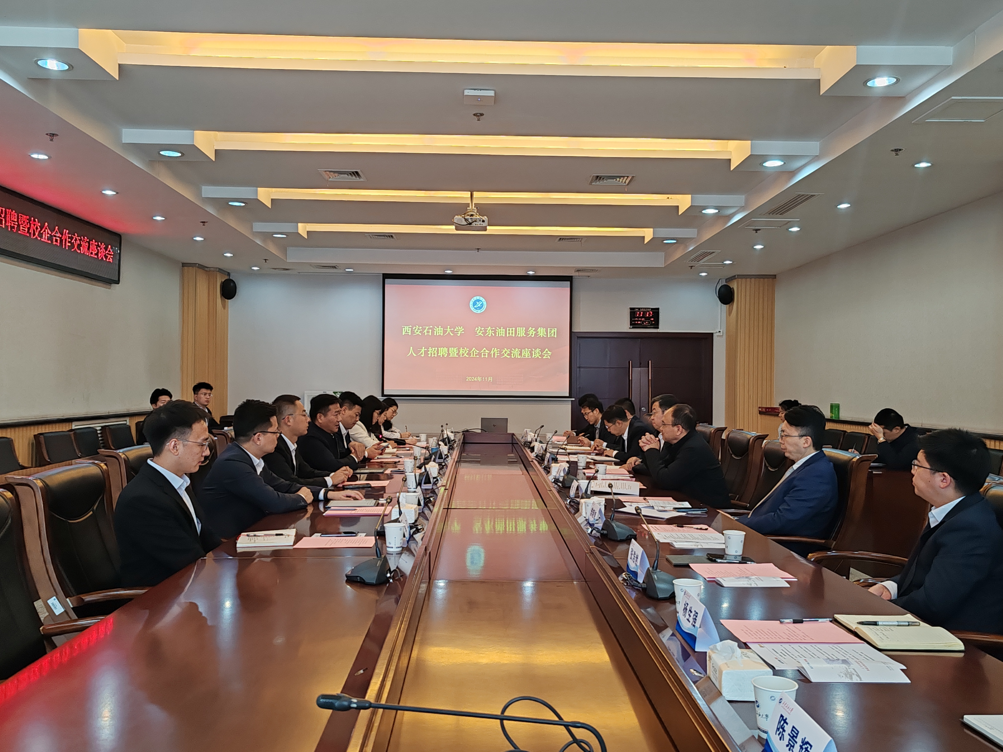 11月22日,bat365与安东油田服务集团在鄠邑校区第二会议室举行人才招聘暨校企合作交流座谈会。安东油田服务集团执行副总裁兼安东石油技术集团董事长刘国庆、bat365中文官方网站校长王进富出席会议。学生工作处(就业创业指导中心)、科研处、石油工程学院、电子工程学院、计算机学院、经济管理学院相关负责同志参加会议。会议由副校长赵健主持。