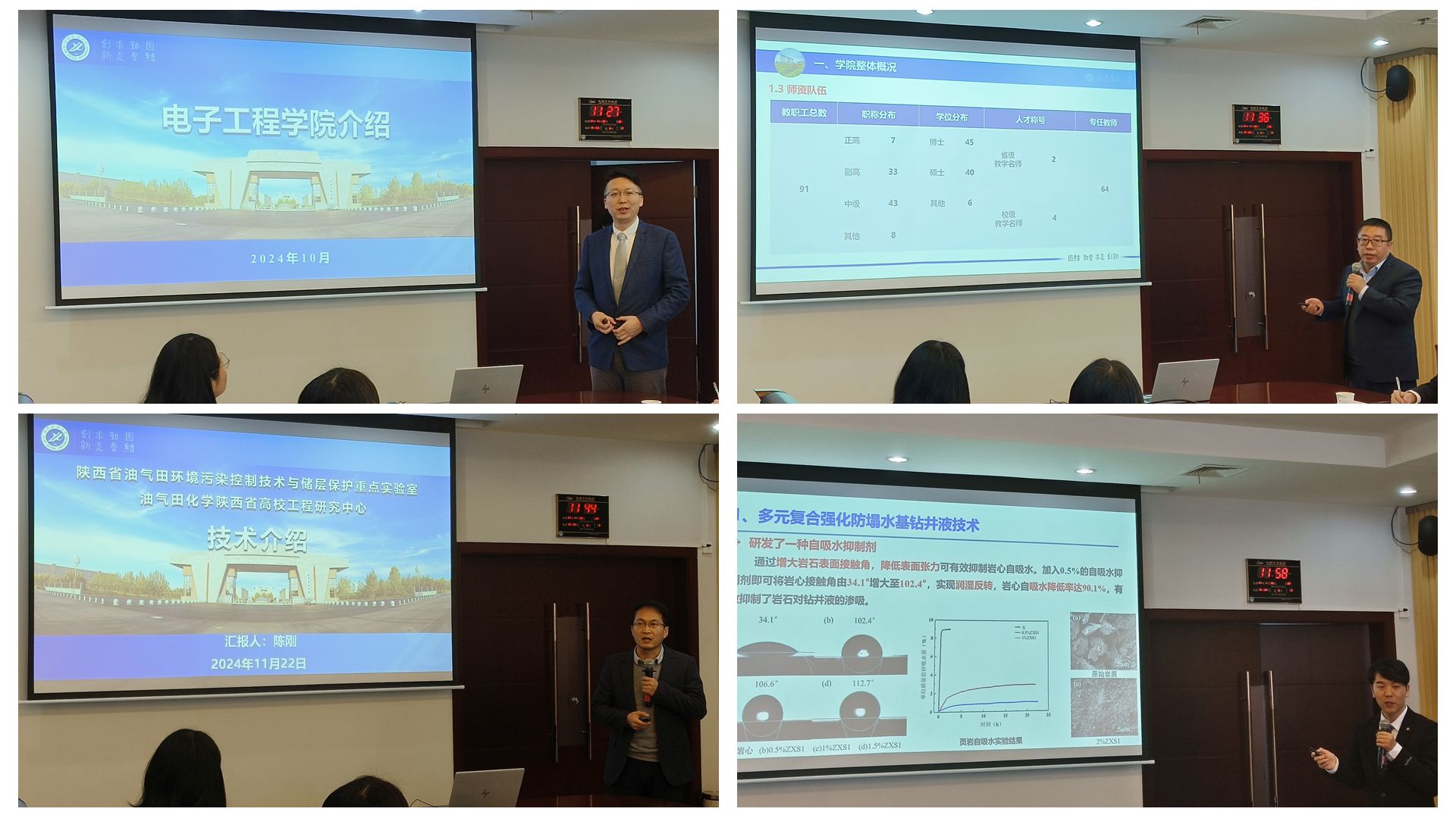 会上,电子工程学院院长李飞、计算机学院院长刘志坤、化学化工学院教授陈刚及石油工程学院博士教师王宗轮就科研团队及科研成果分别进行了汇报展示。