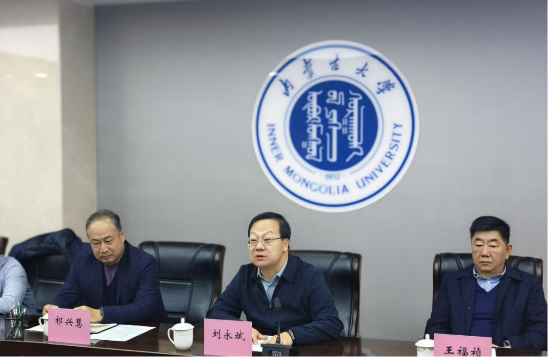 在内蒙古大学走访调研期间,内蒙古大学副校长刘永斌对苏文甫一行表示热烈欢迎,并介绍了内蒙古大学办学情况、学科建设特色、机构设置及功能定位等情况。
