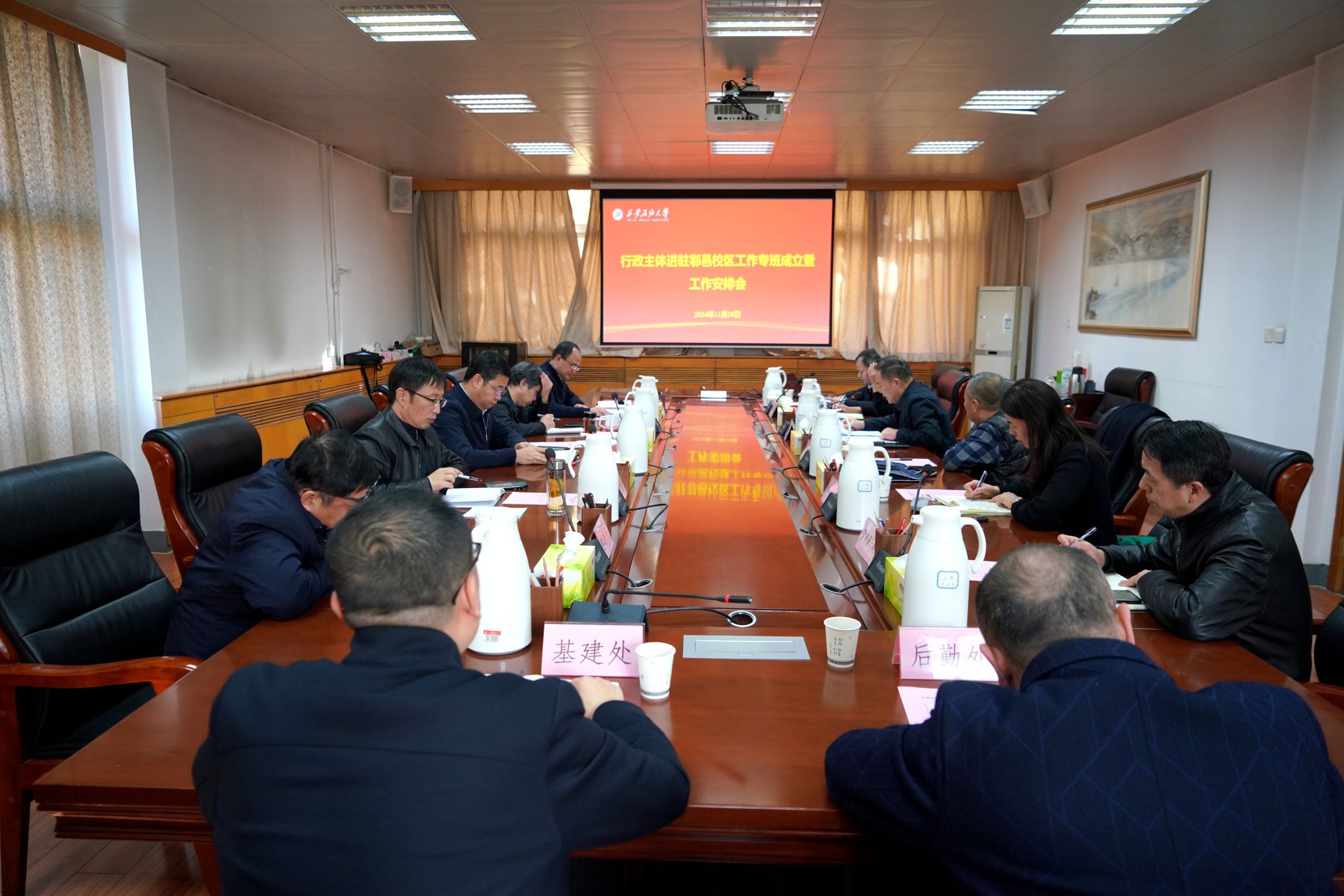 11月28日上午,bat365行政主体进驻鄠邑校区工作专班成立暨工作安排会在雁塔校区办公楼五楼会议室召开,校长王进富,副校长杨战社、苏文甫、赵健,总会计师樊晓民出席会议。会议由副校长赵健主持。