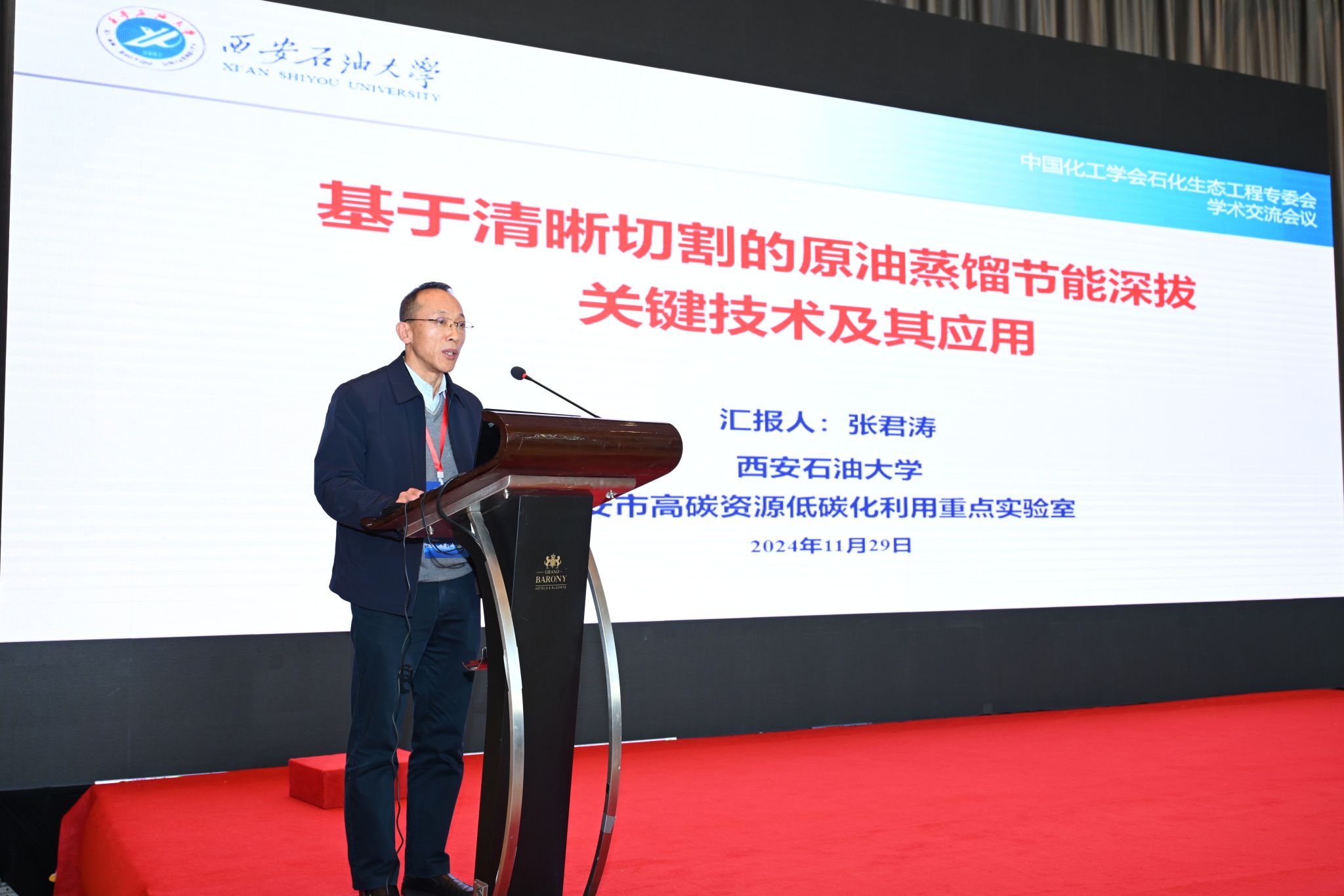 张君涛当选专委会第二届委员会副主任委员,并应邀作了题为“基于清晰切割的原油蒸馏节能深拔关键技术及其应用”的学术报告。