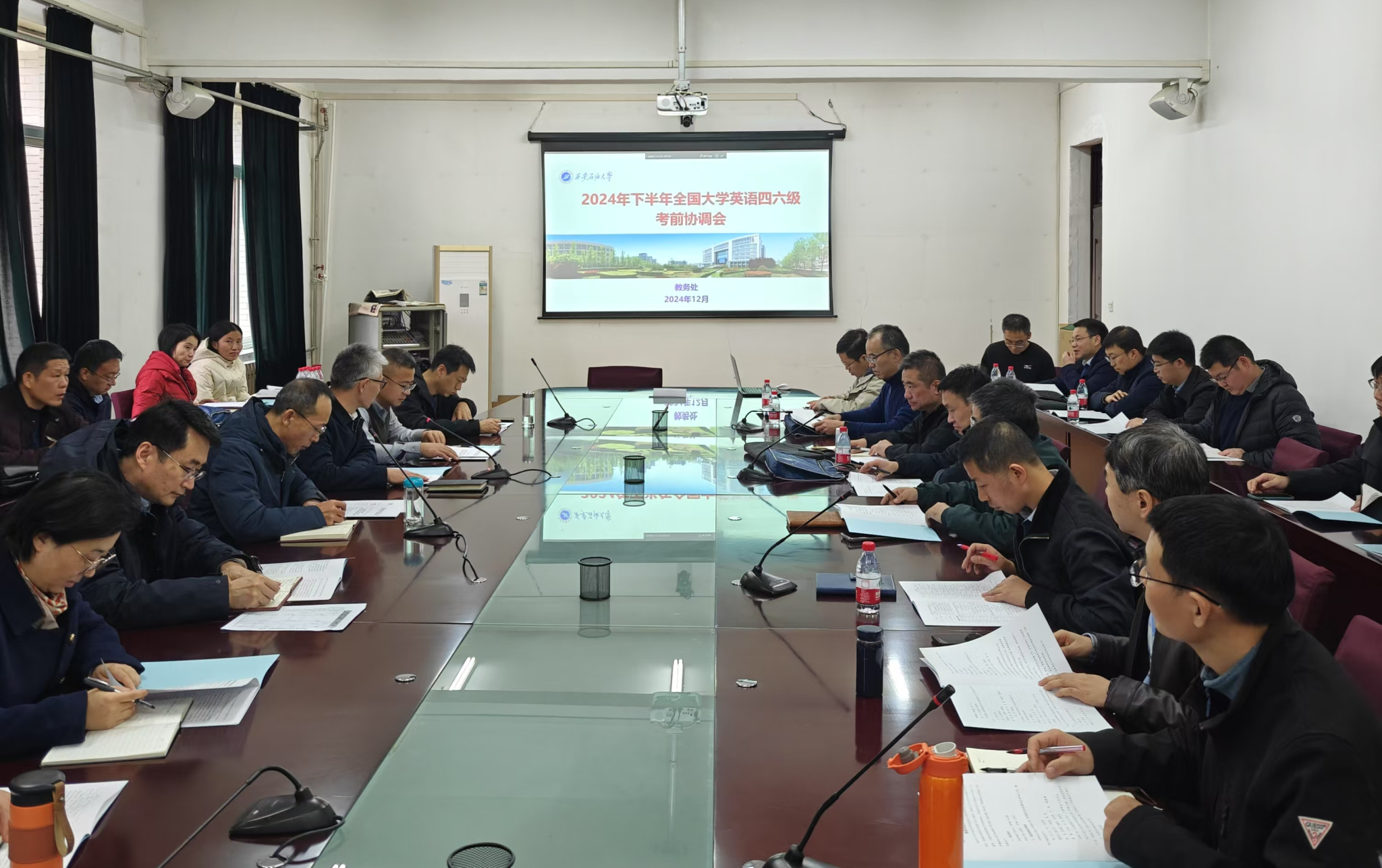 为确保本次考试工作的顺利进行,12月9日下午在鄠邑校区,学校专门召开了2024年下半年全国大学英语四六级考试工作协调会,安排部署各项工作。12月13日,教务处分别在雁塔校区、鄠邑校区举办监考培训会,着重强调了以往考试中存在的各种易发问题、突发状况,明确监考教师职责,要求参会监考人员对工作手册进行深入地自主学习,熟悉操作规程,进一步强化各位监考教师的责任意识、安全意识和违纪违规情况甄别与处理能力。