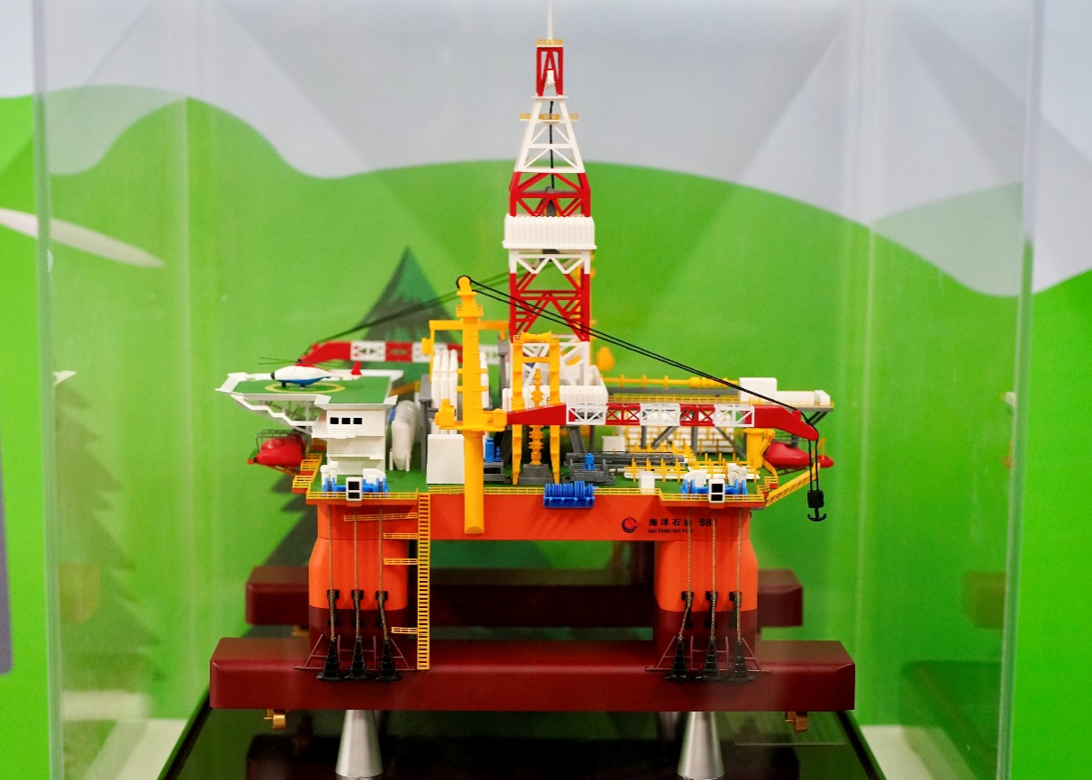 此外,展示区还设置了1个互动打卡点和2个实物展台。打卡点内容为:“新的一天,一起加油啊”我在bat365中文官方网站等你,打卡点显示红心点赞1951次,评论1012条,暗合bat3651951年建校和10月12日校庆的日期。实物展台展出了海洋石油981平台模型和三个不同地区、时期的珍贵岩心。