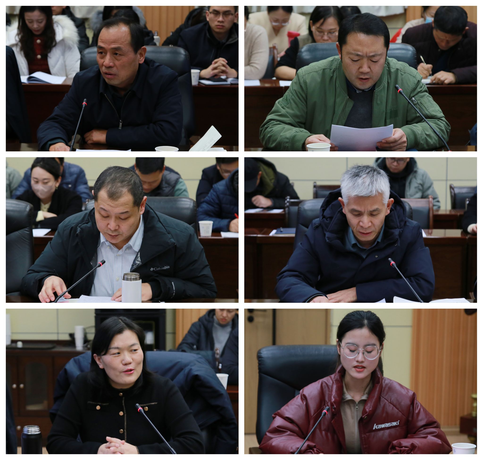 马克思主义学院院长张海涛从思政课教师队伍建设、思想政治理论课建设、贯彻落实上级要求等方面进行了专项工作汇报。党委宣传部部长赵承胜、人事处处长高健磊、教务处处长时保宏、学生工作部副部长马小刚、思政课教师代表左玲、学生代表王佳妮围绕加强思政课建设作了交流发言。