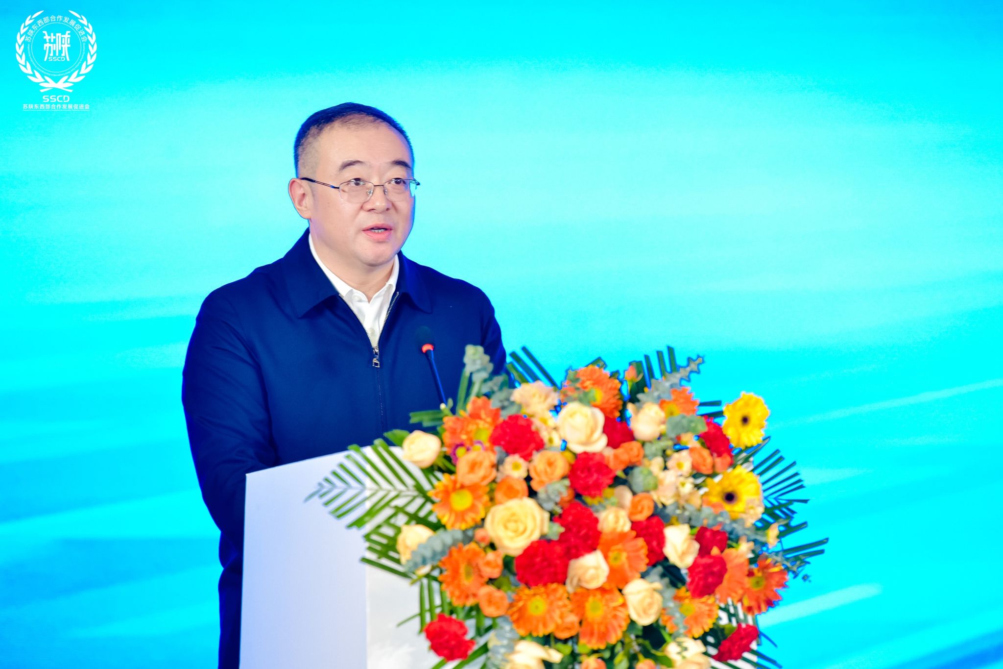 常江在致辞中代表学校对第二届苏陕东西部融合发展大会暨企业家年度盛典的召开表示祝贺。他指出,苏陕同为教育大省,科教资源丰富,并在能源化工、装备制造、电子信息、先进材料等产业中优势互补,以教育来引领苏陕东西部融合发展尤为重要。他希望,以本次大会为契机,构建现代化校企合作新机制,与企业共同打通科教“融汇”的创新接点,为发展新质生产力提供创新赋能;共同找准产教“融合”的发展接点,为发展新质生产力提质增效;共创人才“融通”的资源接点,为发展新质生产力提供人才保障,实现学校和企业的“双向奔赴”。