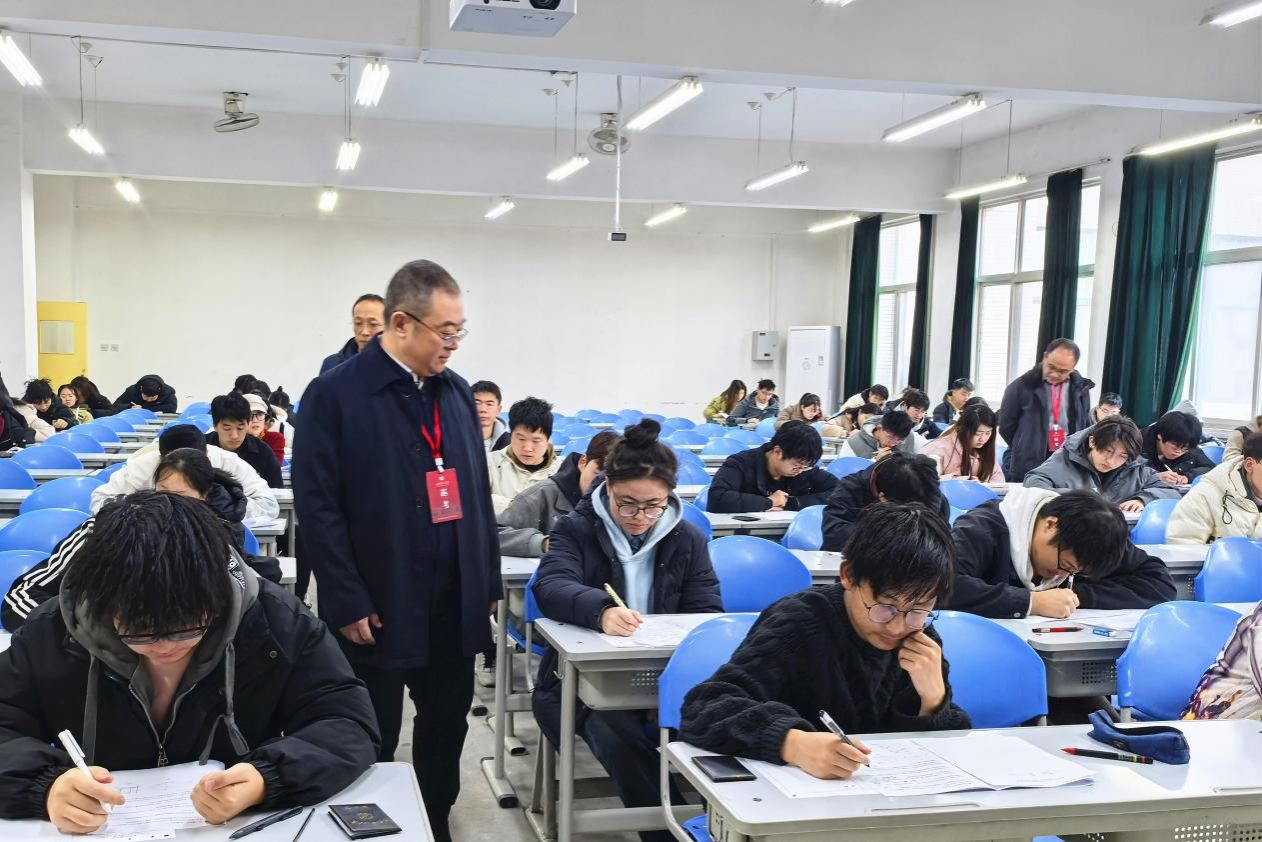 根据学校教学工作安排,2025年1月6日至10日为bat365期末考试周。为进一步加强考风考纪建设,营造公平公正的考试环境,1月7日上午,校党委书记常江等校领导在党委办公室(校长办公室)、教务处、学生工作部(处)等相关部门负责人陪同下,对考场考务和监考巡考等工作进行巡查。