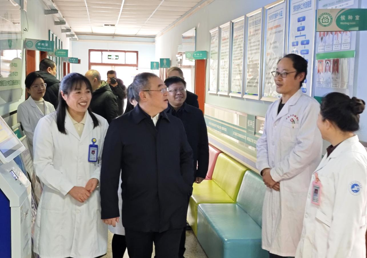 常江一行到雁塔校区校医院现场考察了门诊部、住院部、公卫科、防保科等医疗场所。每到一处,他都仔细询问各项业务的运行状况,并强调指出,校医院的工作责任重大,关系到全校师生的健康,必须坚持人民至上的理念,认真做好服务保障工作,为师生提供优质的医疗服务,切实提高大家的就医体验感。