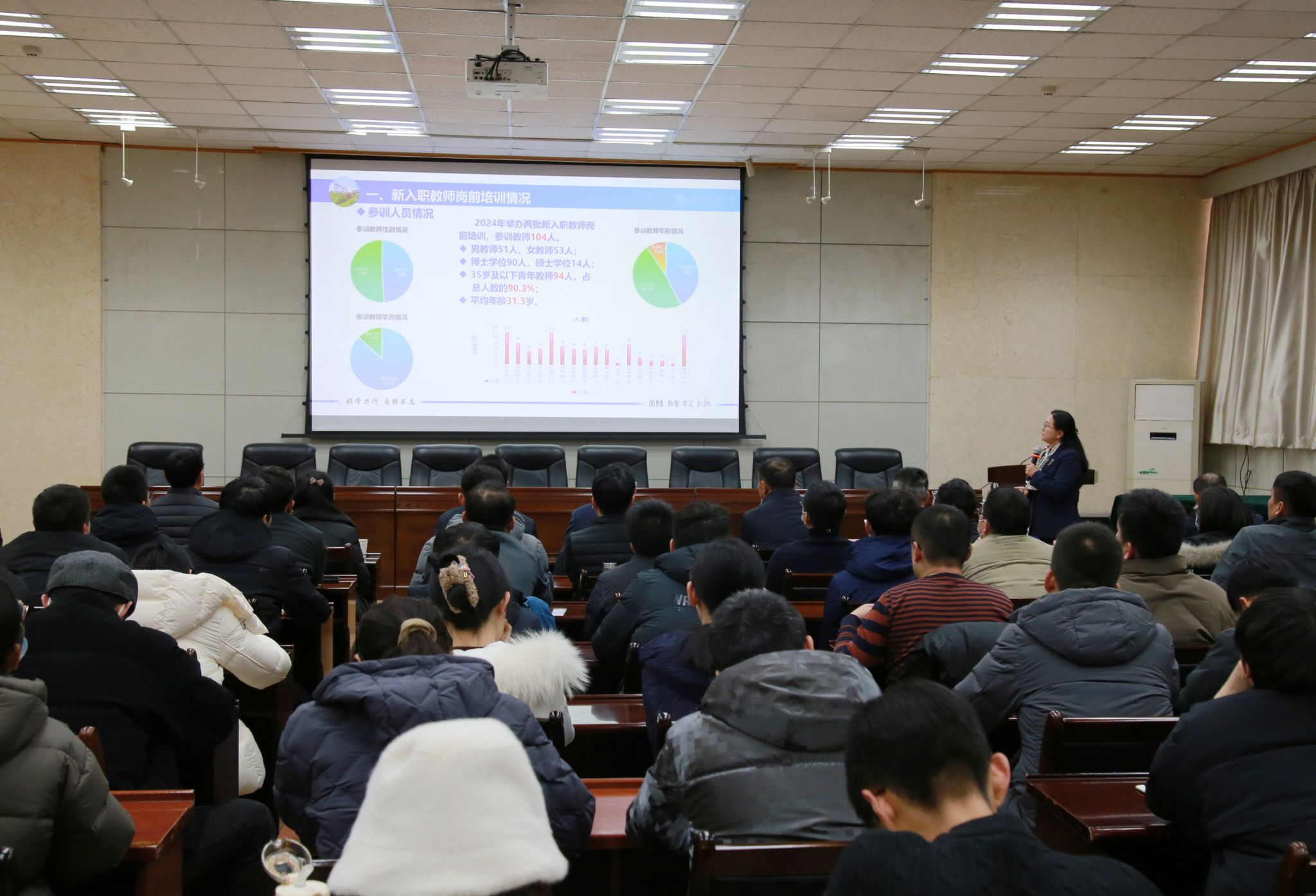 党委教师工作部部长武晓朦汇报了新入职教师岗前培训情况、近期重点工作和中长期教师发展工作任务。她特别强调,教师发展中心将进一步改革岗前培训机制,创新教师培训形式,精准服务青年教师职业成长。