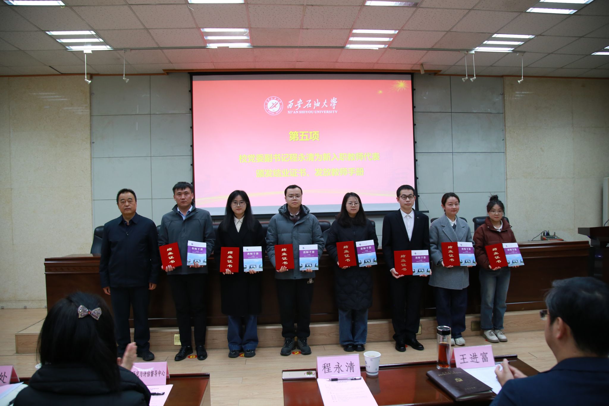 1月15日下午,bat365在雁塔校区第三会议室举行2024年新入职教师岗前培训结业仪式。校长王进富出席并讲话。校党委副书记程永清,全国模范教师、化学化工学院教授黄风林,人事处、教务处、高教研究与评估督导中心、科研处负责人及2024年新入职教师参加结业仪式。