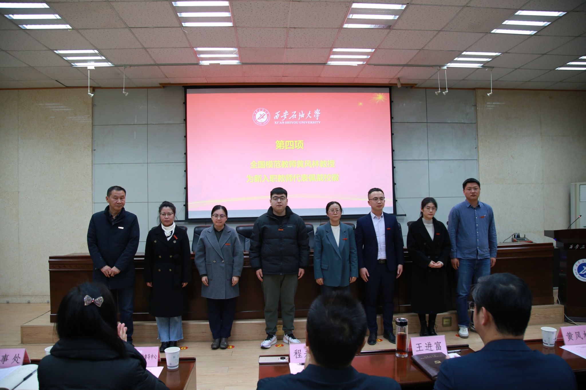 黄风林教授为新入职教师代表佩戴校徽,传递出一份深深的嘱托,也象征着教育精神的薪火相传。青年教师代表、石油工程学院副教授刘娅菲分享了个人角色转换、职业发展和教学科研工作等方面心路历程;新入职教师代表、地球科学与工程学院乔建伟老师在交流发言中表达了为建设高水平教学研究型大学做贡献的决心和信心。