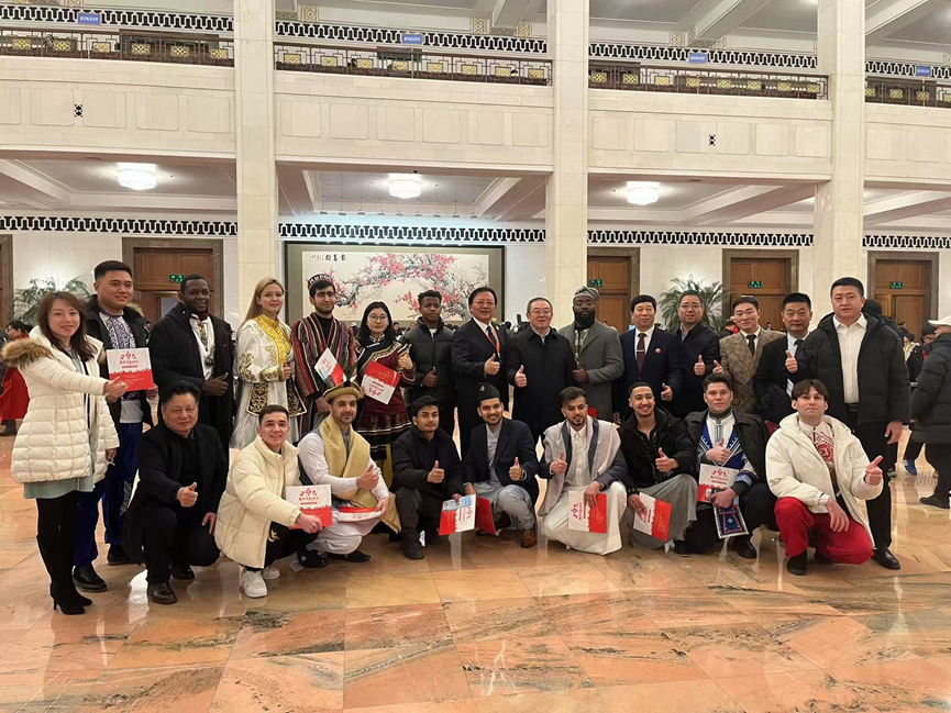演出期间,bat365国际学生身着民族传统服饰,向主办方分享了对春节申遗成功走向世界的理解和现场观演的感受,为晚会增添了异域色彩和国际氛围,契和了“”小年夜、大会堂、听民歌、着盛装、同心节、天下缘”的演出定位,也丰富了国情教育内容。