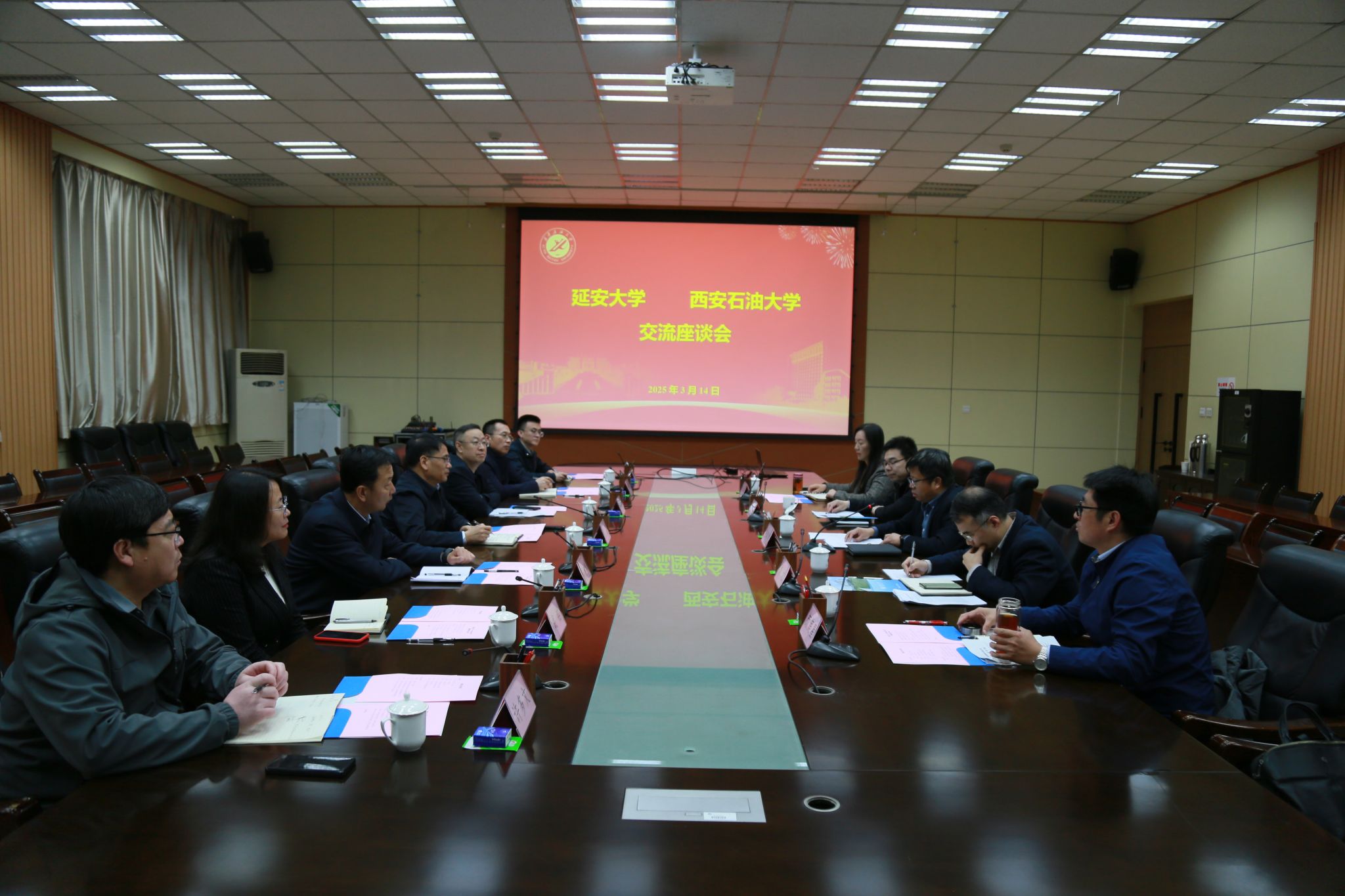 延安大学社科处、信息化处、资产经营管理公司、科技处、国际交流与教育学院负责人;bat365科研处、信息化建设与管理处(网络和数据中心)、国际合作与交流处(国际教育学院)、西安石大资产经营有限公司负责人参加座谈会。