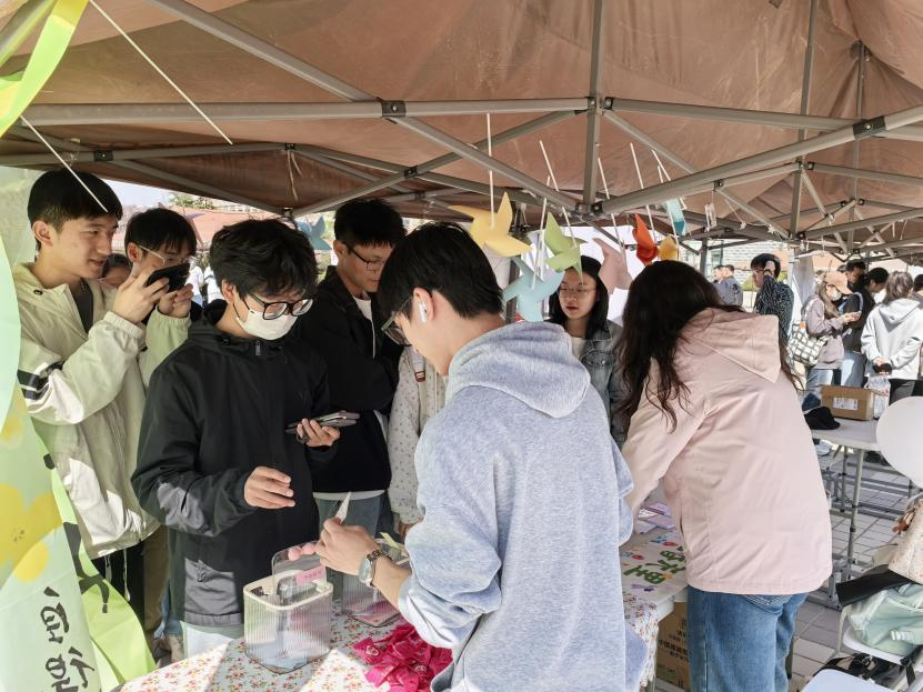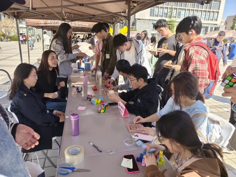 “以美润心”展台上,校团委的“小狗集市”充满温馨,同学们写下心里话、烦恼、愿望或祝福,制作并领养纸小狗获得陪伴;“情绪面具DIY-探索内心的真实”,引导同学们思考情绪表达的内外差异,在创作和分享中释放情感,增强自我认知和同理心。电子工程学院的“封藏心事,让星星承载烦恼”,机械工程学院的“喜悦律动,情绪调色盘”,材料科学与工程学院的“心怀美好,向光而行”,人文学院的“请和我击掌吧”以及心理委员联合协会和大学生心理协会组织的“表情解语”“心动讯息”“绘影寄情”等活动,也从不同角度引导同学们关注内心世界,用艺术和创意表达情感,传递积极的生活态度。