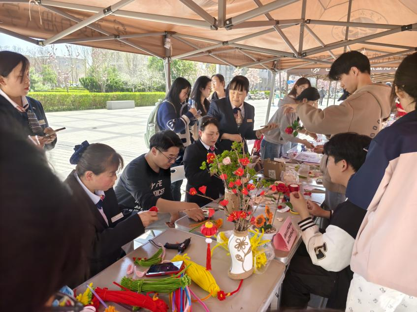 “以劳健心”展台上,石油工程学院的“一囊芳菲入梦,满园春色安神”活动,同学们亲手制作安神助梦香囊,在一针一线中感受自然的芬芳,舒缓身心,收获内心的宁静与平和。后勤处北京国基伟业物业管理有限公司与计算机学院则带领大家利用扭扭棒制作心花“乐”放,用创意和双手表达内心的喜悦。心理委员联合协会用辨别农作物的方式,领着同学们走近田间地头,识别各种农作物、农产品。