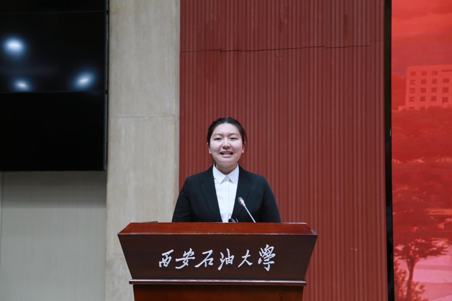 来自化学化工学院环境工程专业的王雅婷,作为获奖学生代表发表感言。她已保研至山东大学环境科学与工程专业,此次获奖是对她优异表现的充分肯定。她表达了对学校、陕西省杜斌丞教育思想研究会和正泰公益基金会的感激之情,并分享了自己的学习经验与成长感悟。王雅婷表示,要传承杜斌丞先生“读书勿忘救国”的精神,把专业学习与国家需求紧密结合。她将带着这份荣誉继续前行,在新的征程中贡献青春力量。