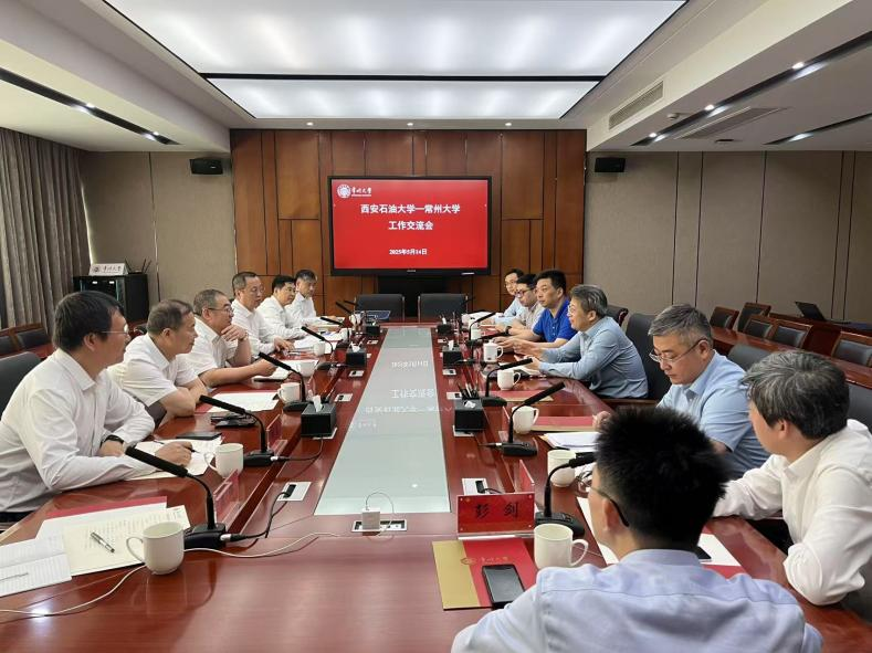 常江对常州大学热情接待表示感谢,并深情回顾了双方历史渊源。他指出,双方虽分处苏陕两地,但同为我国能源化工行业的重要人才摇篮,均始终以服务国家能源战略为使命,紧密围绕石油石化产业链,形成了各自的办学特色。双方在油气勘探开发、新能源材料、装备智能制造等领域各具优势,合作空间广阔。希望双方进一步加强校际交流与合作,强化学科交叉融合与资源共享,实现“1+1>2”的协同效应,共同推动高等教育事业发展,共同为保障国家能源安全做出应有贡献。徐守坤对常江一行到访表示热烈欢迎。他表示,双方此次交流是两校血脉相连的情感共鸣,更是面向未来的战略抉择。当前,在能源行业绿色化、智能化转型的关键期,两校需以“共商、共建、共享”理念,合力破解“卡脖子”技术难题,培育“敢闯会创”的复合型人才,为推动能源革命贡献高校智慧。