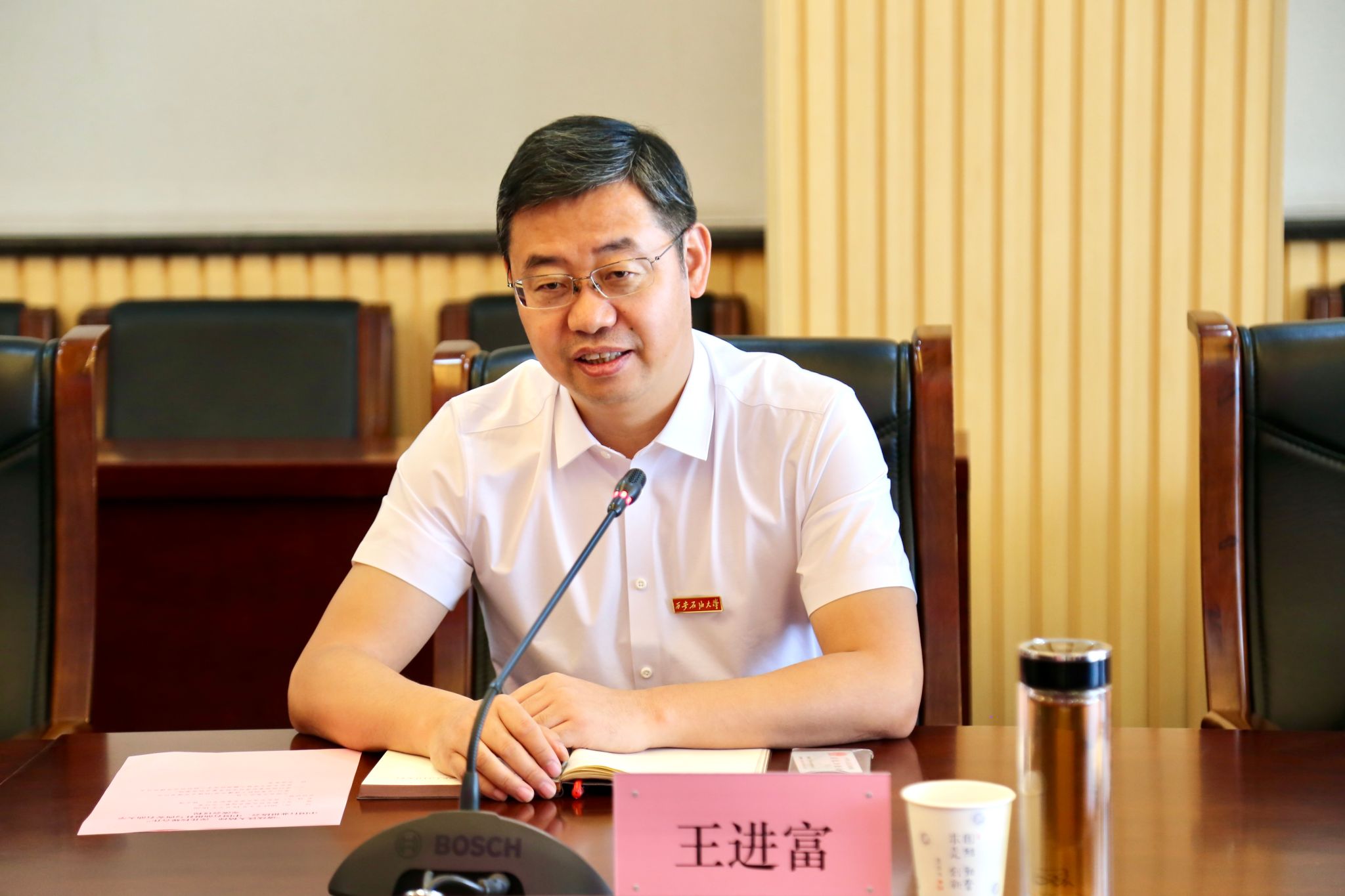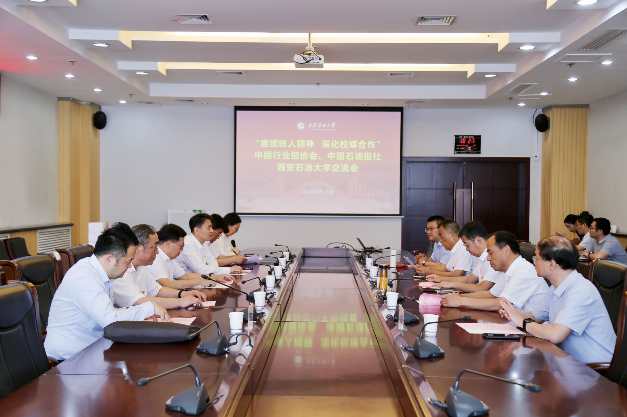 5月19日下午,中国行业报协会会长张超文、《中国石油报》社有限公司总经理耿玉锋与bat365领导在鄠邑校区图书馆第二会议室举行座谈,bat365校长王进富出席会议,校党委副书记程永清主持座谈会。