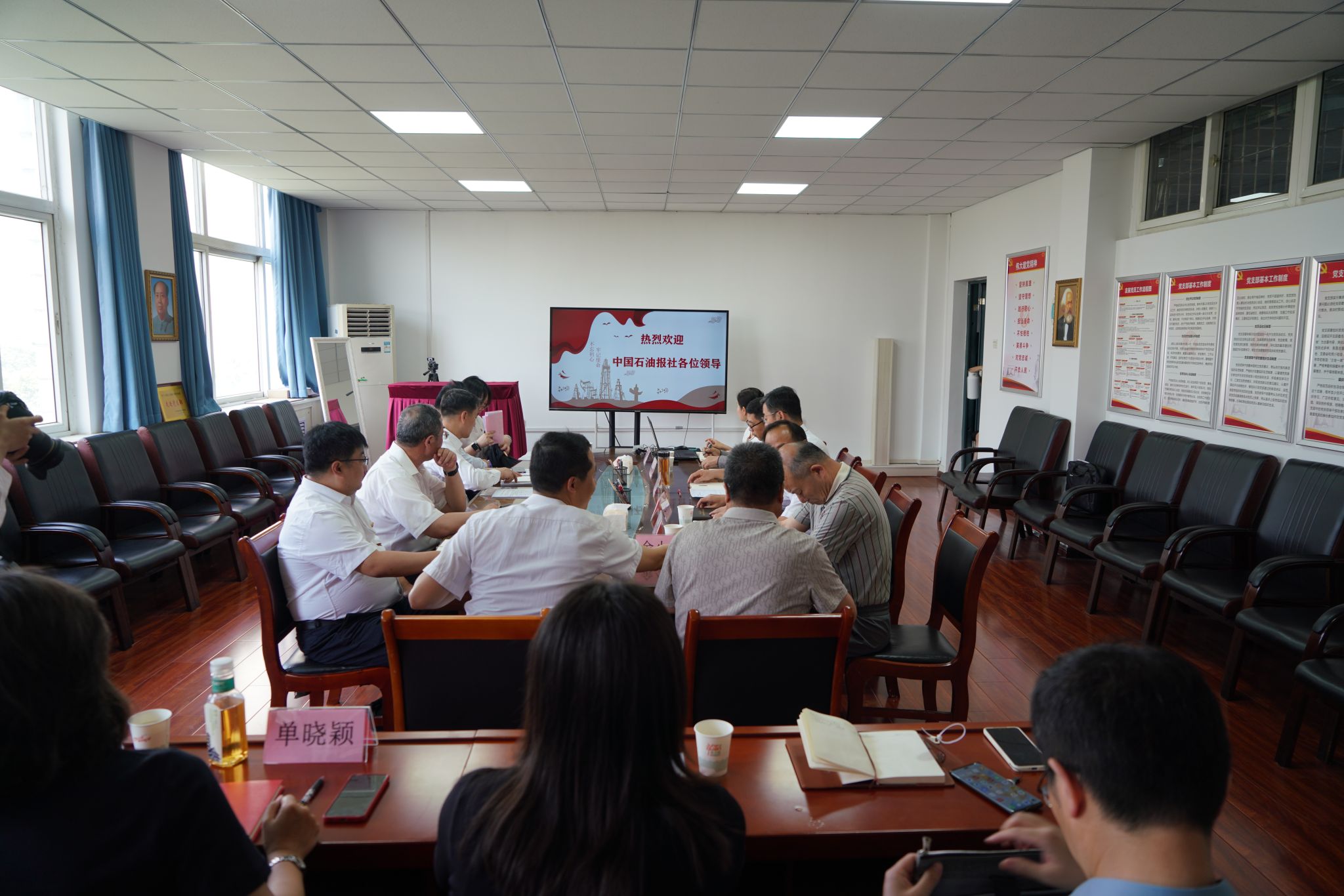 刘爽从中国石油报社的历史沿革、发展现状、经验成果、平台建设、发行数量、粉丝规模等进行汇报。通过对报社数字化的解读,“90家国内记者站”、“4个海外记者站”、“1个特色展厅”、“五刊两报”、“五大平台”、“八大平台账号”、“1亿多点击量”等展示了中国石油报社“主流、全媒体、国际化”的新闻信息传播体系和“新闻+政务、+商务、+服务”的成功转型道路。