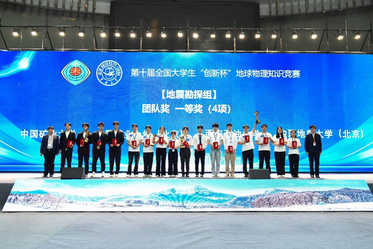 bat365地球科学与工程学院党政领导高度重视,派出由沈鸿雁副院长领队,李萌副教授、冯旭亮副教授、李欣欣副教授分别担任地震勘探类、重磁电勘探类、固体地球物理类指导教师的三支代表队参赛。通过笔试、视频评审、现场自我展现、个人必答题、团队必答题、综合论述题、团队抢答题以及辩论题等环节的激烈角逐,最终朱珺洁(地信22级学生)、赵玉峰(物探22级学生)、王梦(物探21级学生)、卜钊亮(物探21级学生)组成的地震勘探队伍荣获一等奖,李倩(地信22级学生)、李艳萍(物探22级学生)、王梦馨(地信22级学生)、朱少维(地信21级学生)组成的重磁电勘探队伍荣获二等奖,周晓娜(物探21级学生)、向晶瑾(地信22级学生)、王淑莹(物探22级学生)、刘子夏(物探22级学生)组成的固体地球物理队伍荣获三等奖。