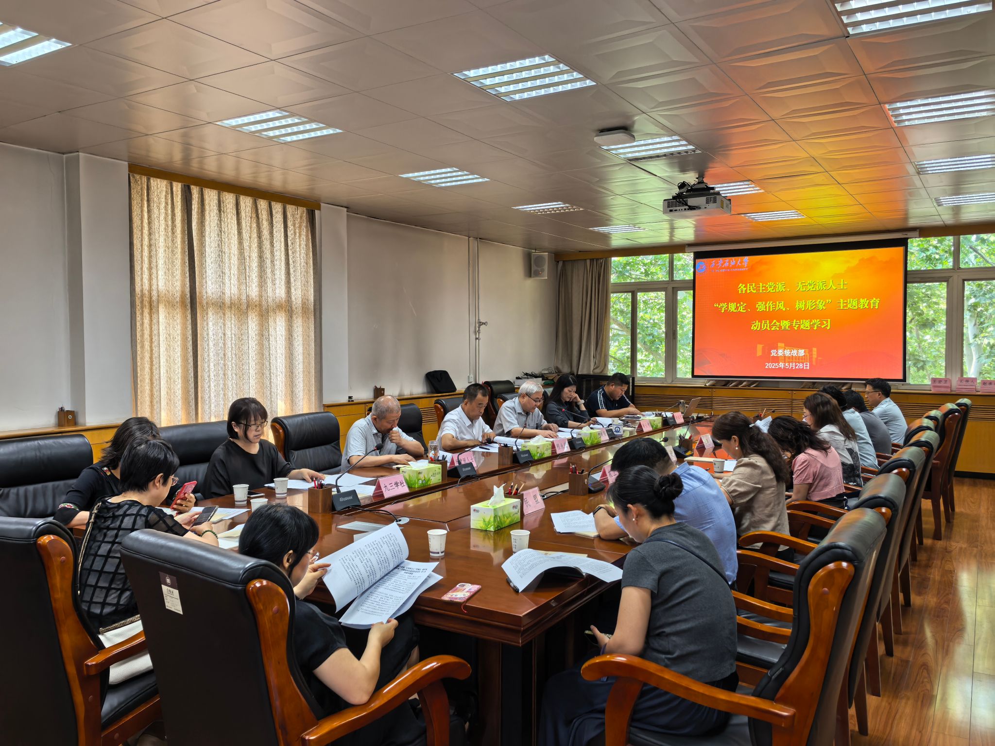 5月28日下午,学校在雁塔校区办公楼五楼会议室召开各民主党派、无党派人士“学规定、强作风、树形象”主题教育动员会暨专题学习会,校党委副书记程永清参加会议并作动员讲话。党委统战部全体成员,各民主党派支部委员,全体无党派人士,侨联、留联会、知联会负责人参加会议。