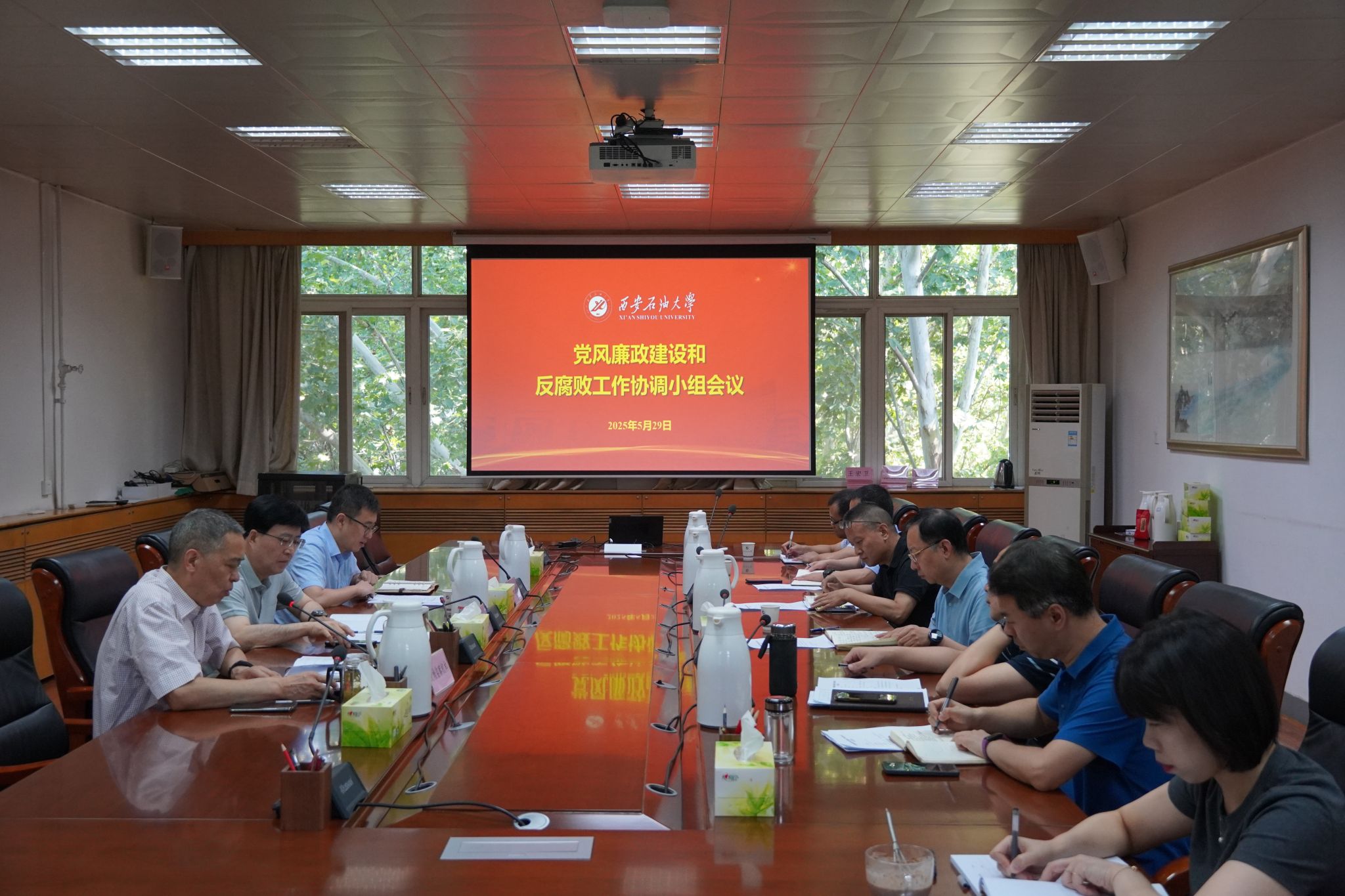5月29日上午,学校党风廉政建设和反腐败工作协调小组召开2025年第一次会议。校党委副书记、纪委书记、监察专员、协调小组组长王辉强出席会议并讲话。党委办公室(校长办公室)、纪检监察机构、党委巡察工作办公室、组织部、人事处、财务处、审计处等部门负责人和纪检监察机构有关人员参加会议。