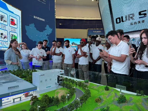 当日下午,师生一行赴陕西汽车控股集团有限公司(陕汽控股)开展企业参访。在企业展厅,留学生们详细了解了陕汽的发展历程、企业文化及“德赢天下”的品牌理念。通过讲解员介绍,大家认识到陕汽不仅是中国重型商用车行业的领军企业,更在国防建设和社会公益等领域肩负重要责任。