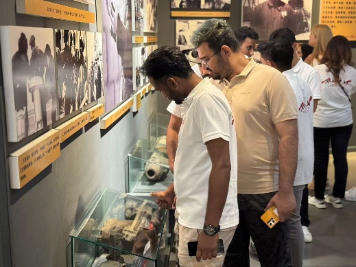 下午,师生们前往八路军东渡黄河旧址和司马迁祠参观学习。在八路军东渡黄河纪念展馆,展柜中陈列的战士们使用过的枪械、衣物、信件等物品,真实再现了那段艰苦卓绝的抗战岁月。留学生们被中国共产党领导下的人民军队英勇无畏、舍生忘死的精神深深震撼,表示此次参观加深了他们对中国近现代史的理解,并对中国人民面对外敌入侵时展现的坚强意志和不屈精神深感敬佩。