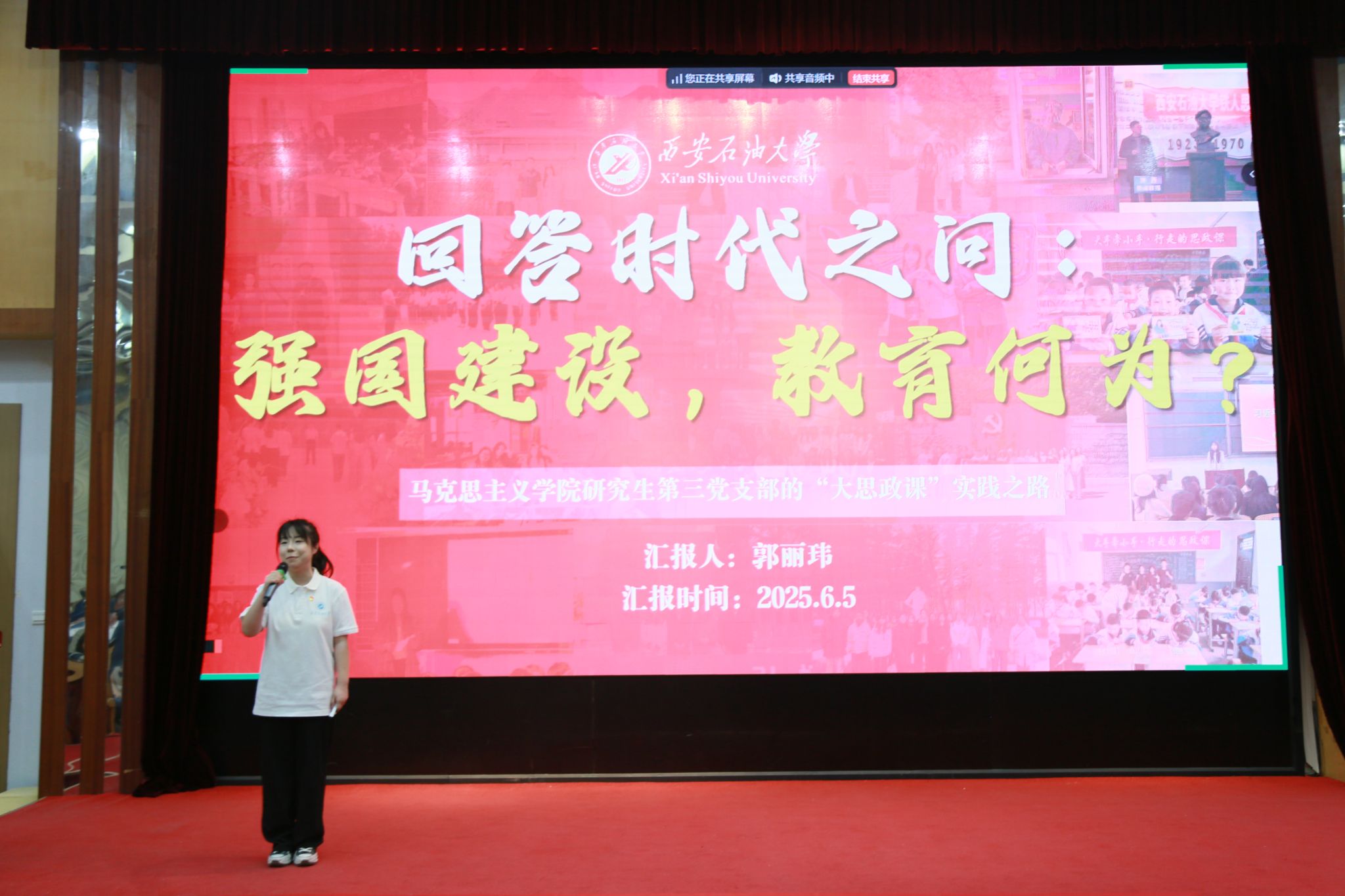 在十佳研究生党员风采展示中,石油工程学院博士研究生陈浩宇讲述了以“融山汇海”之志践行能源报国初心,将九年志愿服务与六年党务工作融入科研探索,发表8篇SCI论文和多项科研项目,以1150小时志愿服务践行初心,以山海之志铸就能源报国的新篇。经济管理学院硕士研究生姬祥飞讲述了在西石大七年求学中,勤于实践,漫漫求索,获学生骨干、学术科研、学科竞赛等多项成果,曾获三次国家奖学金,荣获“陕西好青年”,彰显新时代青年担当的故事。机械工程学院硕士研究生李纪新,以“纪实青春支教路,心绘未来新篇章”为主题分享了他的支教经历和感悟,展现了以青春之小我融入祖国之大我,在未来学术挑战中奋勇向前的信心和决心。电子工程学院硕士研究生熊泽康以“小电路大担当:一名工科党员的能源报国路”为题,讲述了以红色信仰铸就科研报国志,在团队科研项目中实现国产化突破,抒发了石油学子以电路为刃破解能源困局,以青春担当铸牢国家能源安全防线的青春志向。