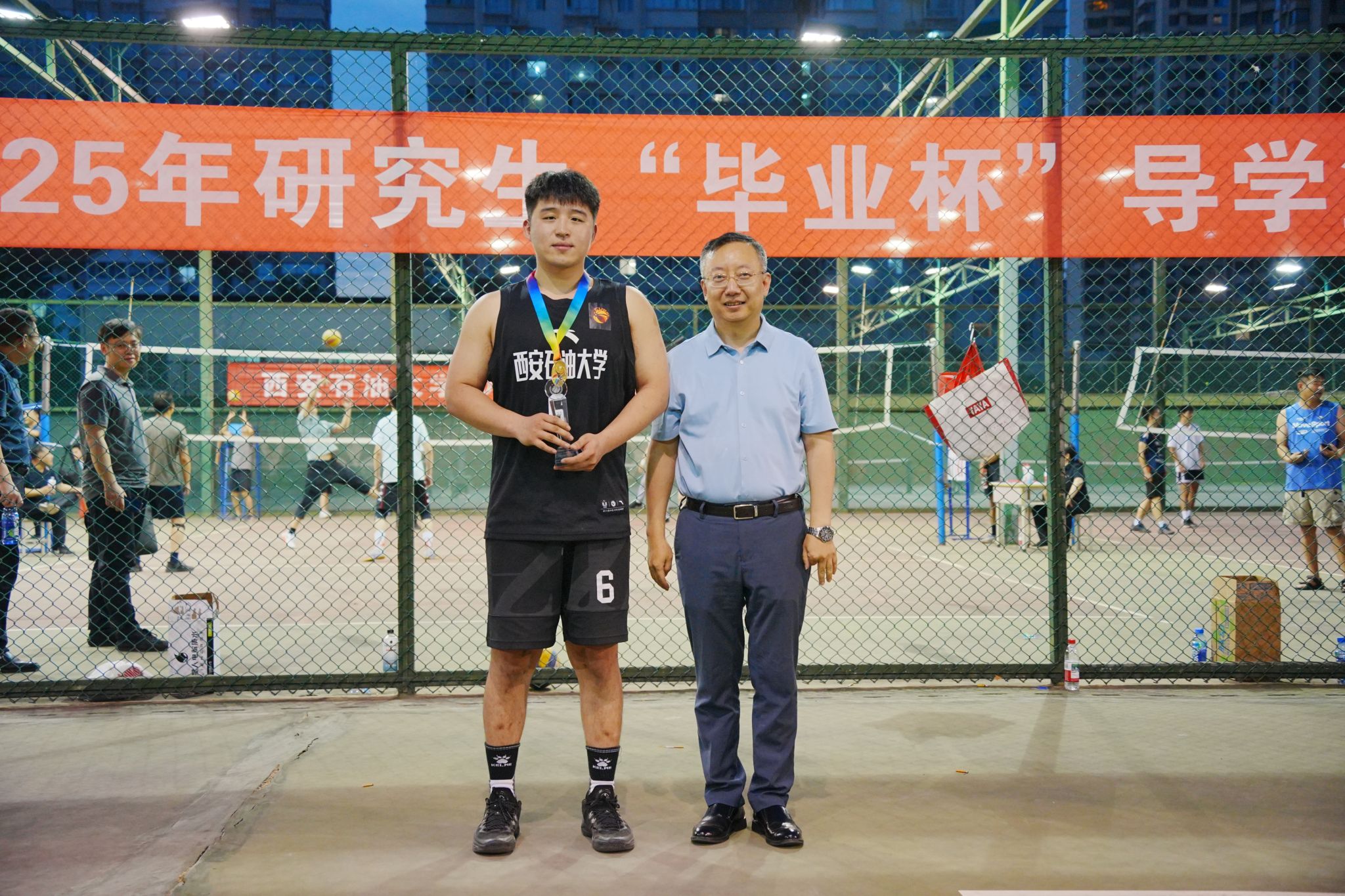 6月5日下午,bat365中文官方网站2025年研究生“毕业杯”导学篮球赛闭幕式暨颁奖典礼在雁塔校区篮球场举行。校长王进富、副校长种宇宏出席闭幕颁奖仪式。研究生工作部、研究生院、团委、体育学院负责人与参赛师生共同见证颁奖荣耀时刻。